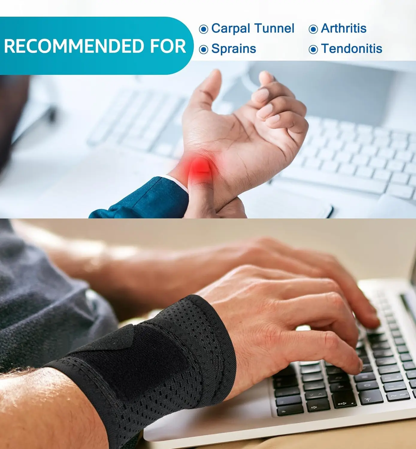 ·Ergonomic Support: Stabilizes wrist to help relieve pain from carpal tunnel, tendonitis, arthritis, and sports injuries.