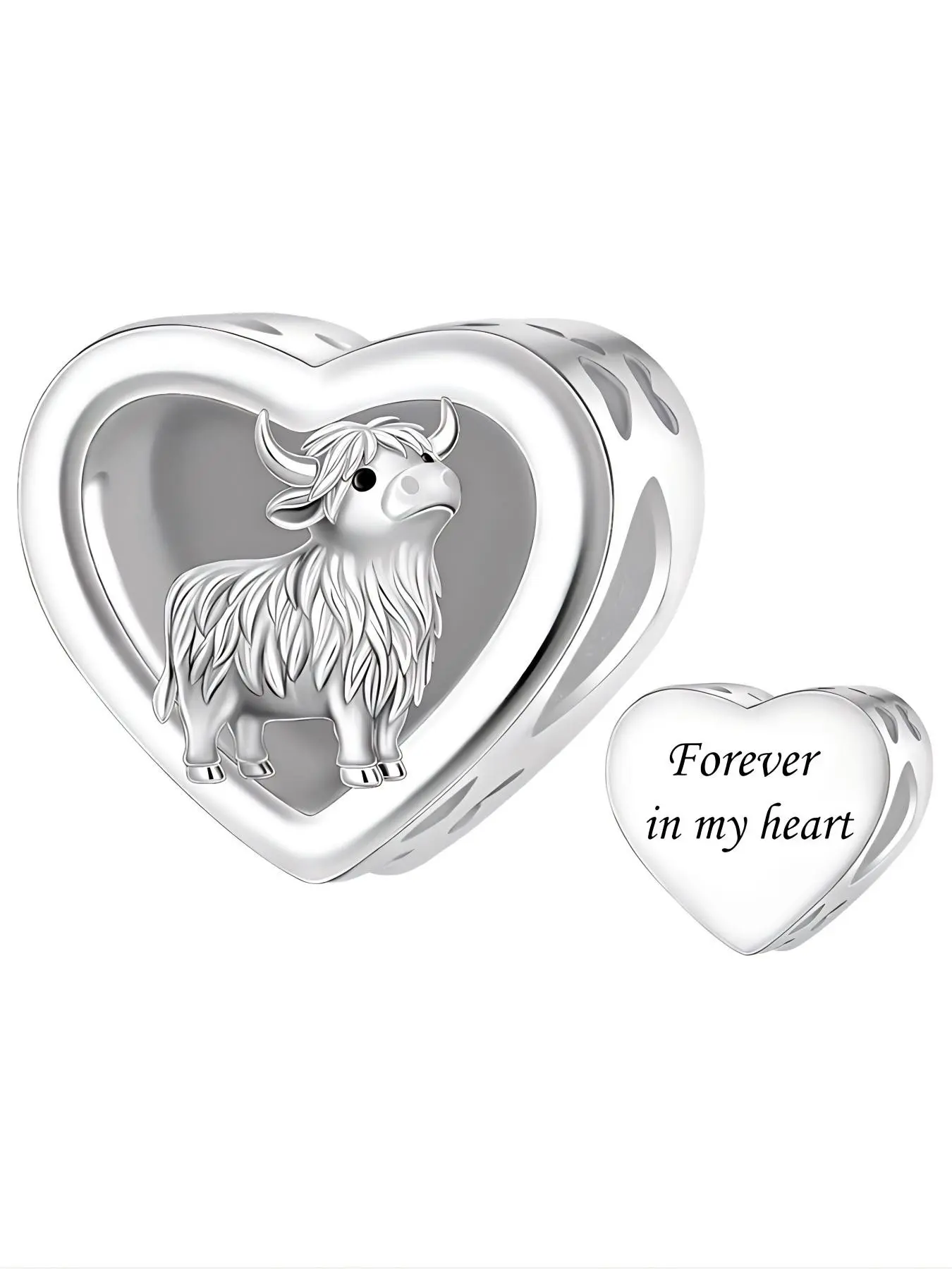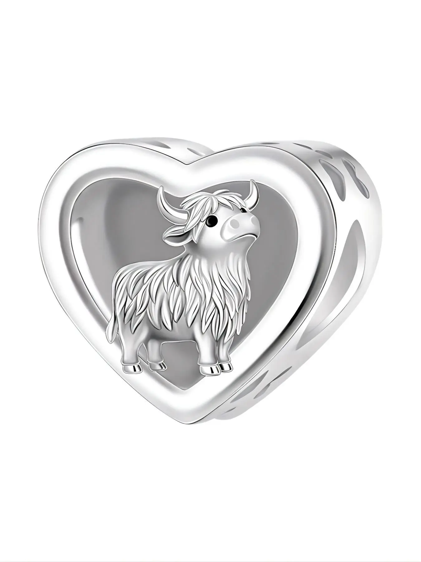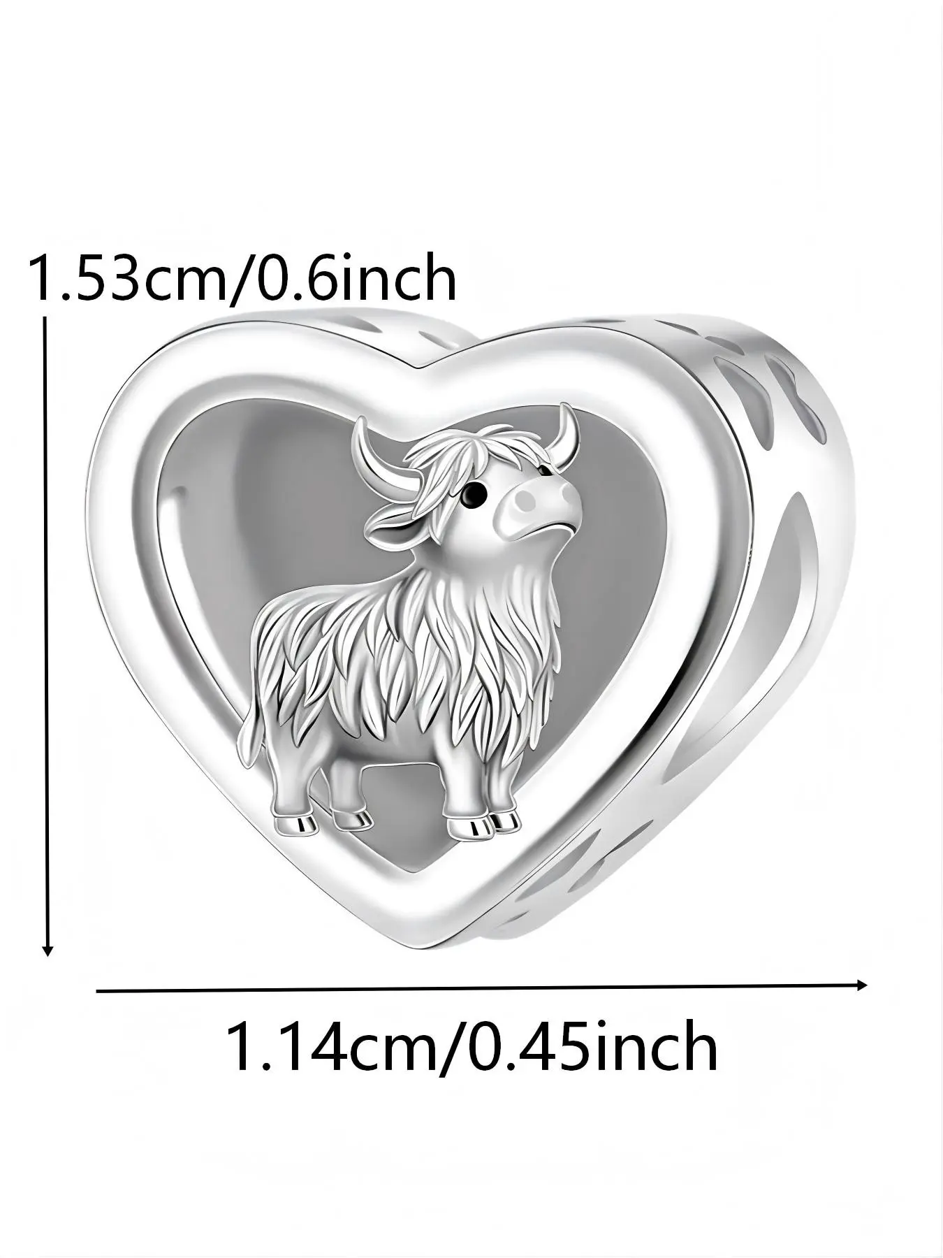 Cute Animal Charm Pendant, Copper Plated Silver Color Highland Cow Design, Perfect Gift for Friends, All-Season Accessory