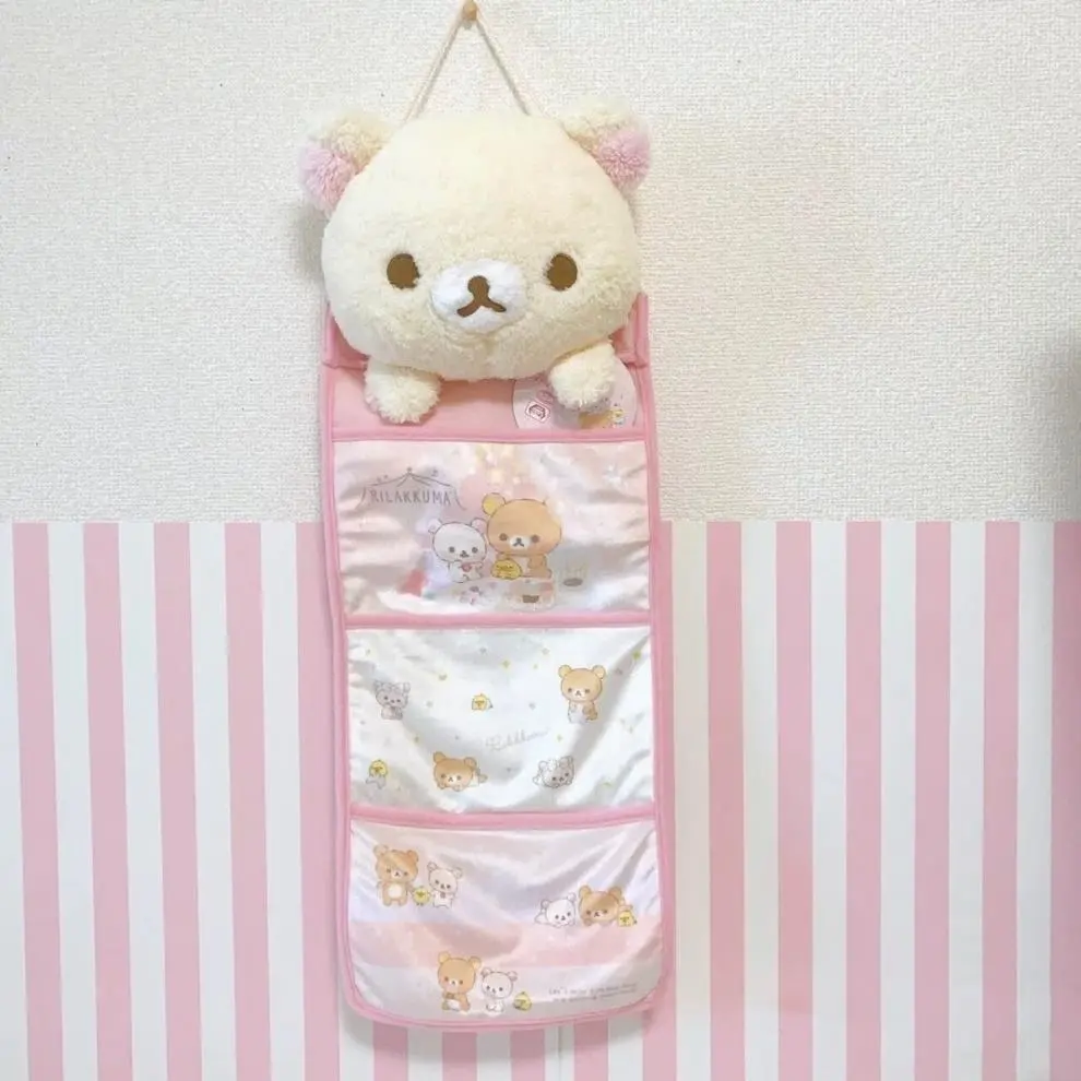 5. Kawaii Rilakkumas Wall Hanging Storage Bag Cartoon Rilakkumas Bear Door Hanging Bag Large Capacity Sundries Storage Bag Gift