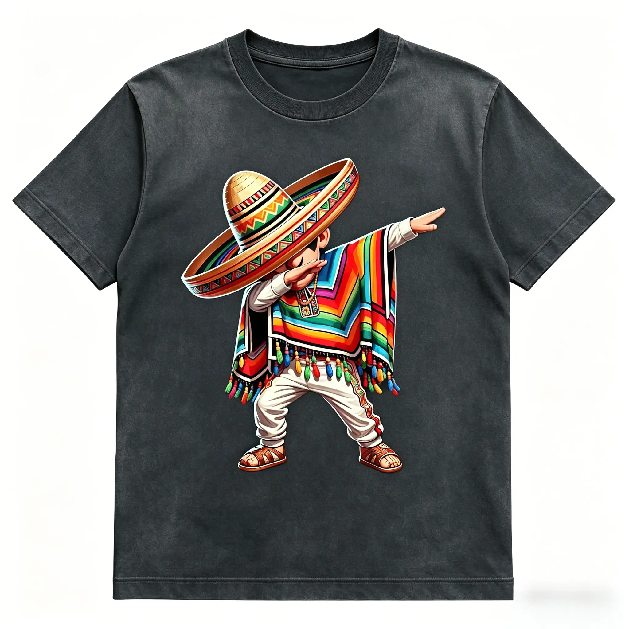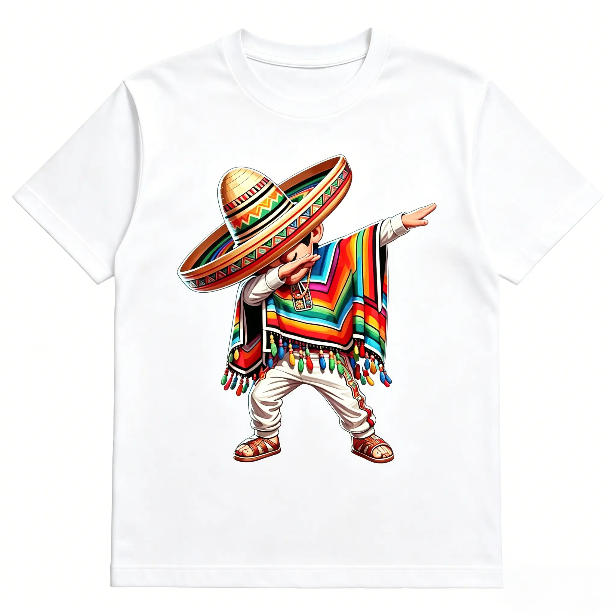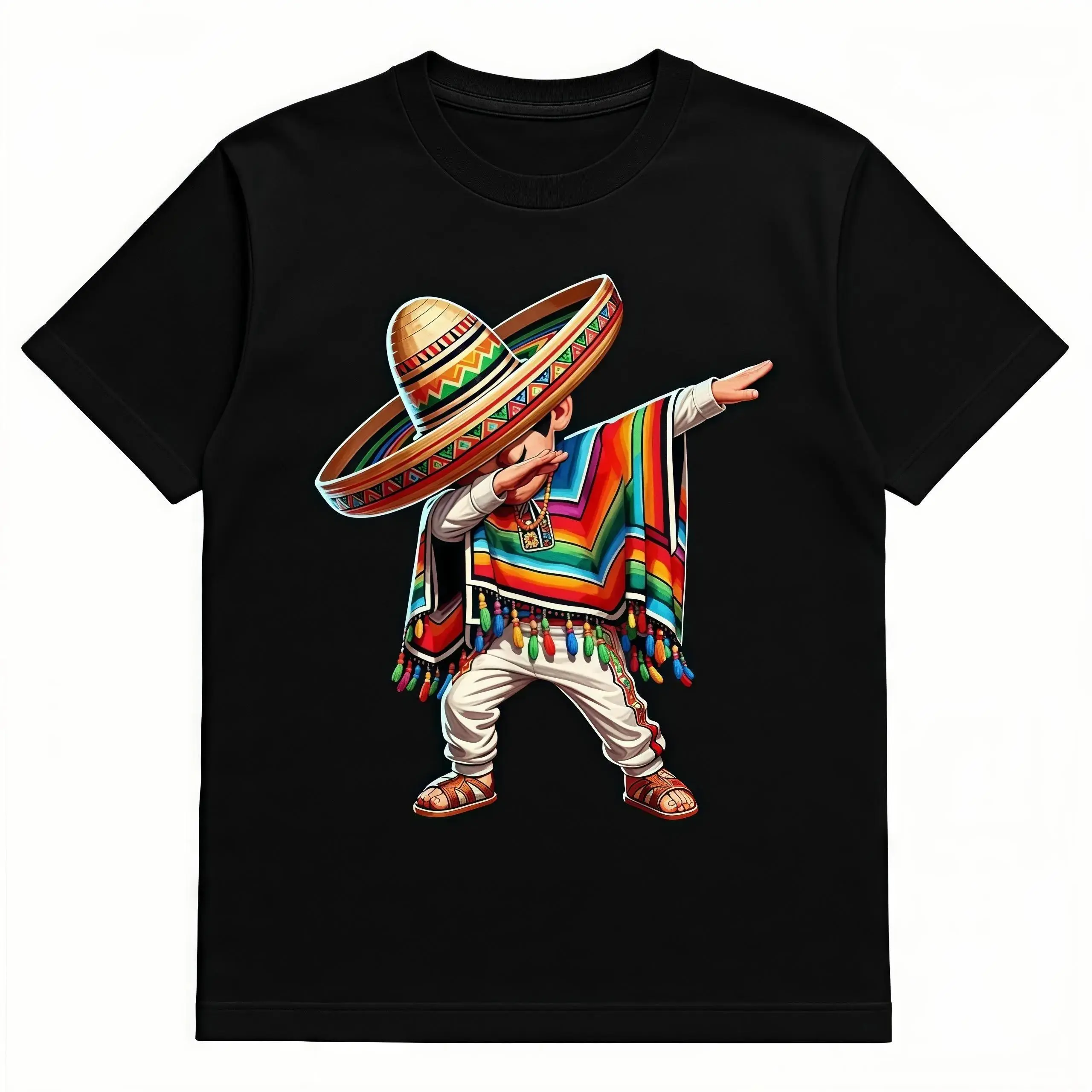 HAGBDH Men's Casual Cotton Graphic Crewneck Tee with Mexican Sombrero & Poncho Dab Dance Print for Fiesta Father's Day Gift Fall Outfit Streetwear - Fathersdaygift