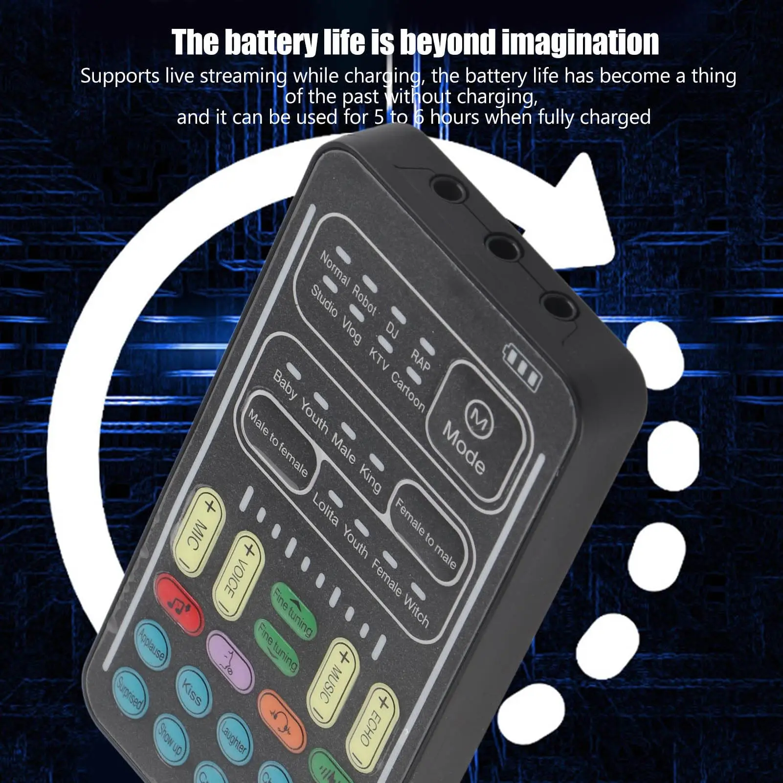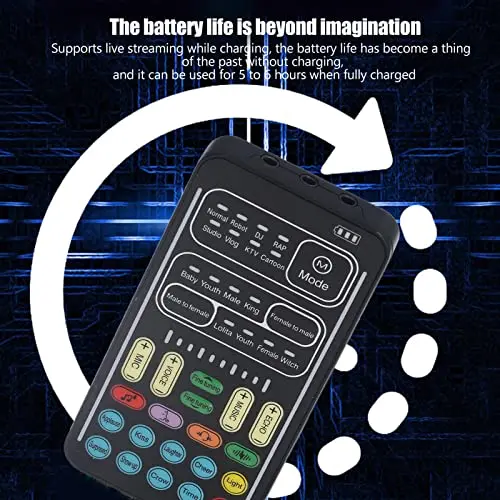 【8 Built In Sound Effects】The sound card comes with 8 interesting sound effects, you can get interesting sound effects just by pressing the of each sound effect. The eight sound effects are applause, kiss, laughter, cheerful, surprise, fright, crow, and times. The voice changer uses LED lights, which are very cool, and the lights have a separate control to turn off.