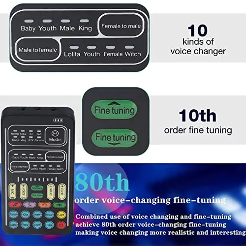 【8 Different Sounds】This handheld voice changer has 8 different voice changes, male to female, female to male, normal, lolita, baby, youth, king, witch. You can also use the fine tuning to adjust each sound for more different sounds.