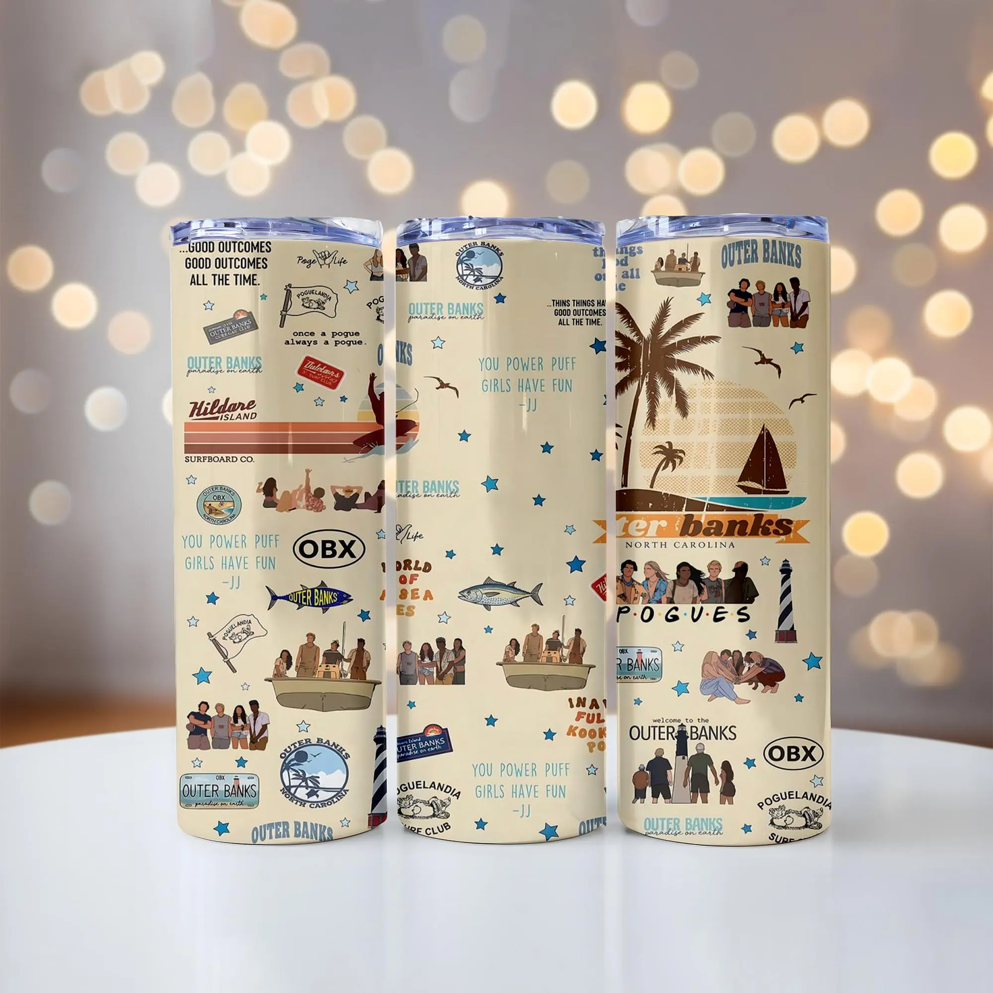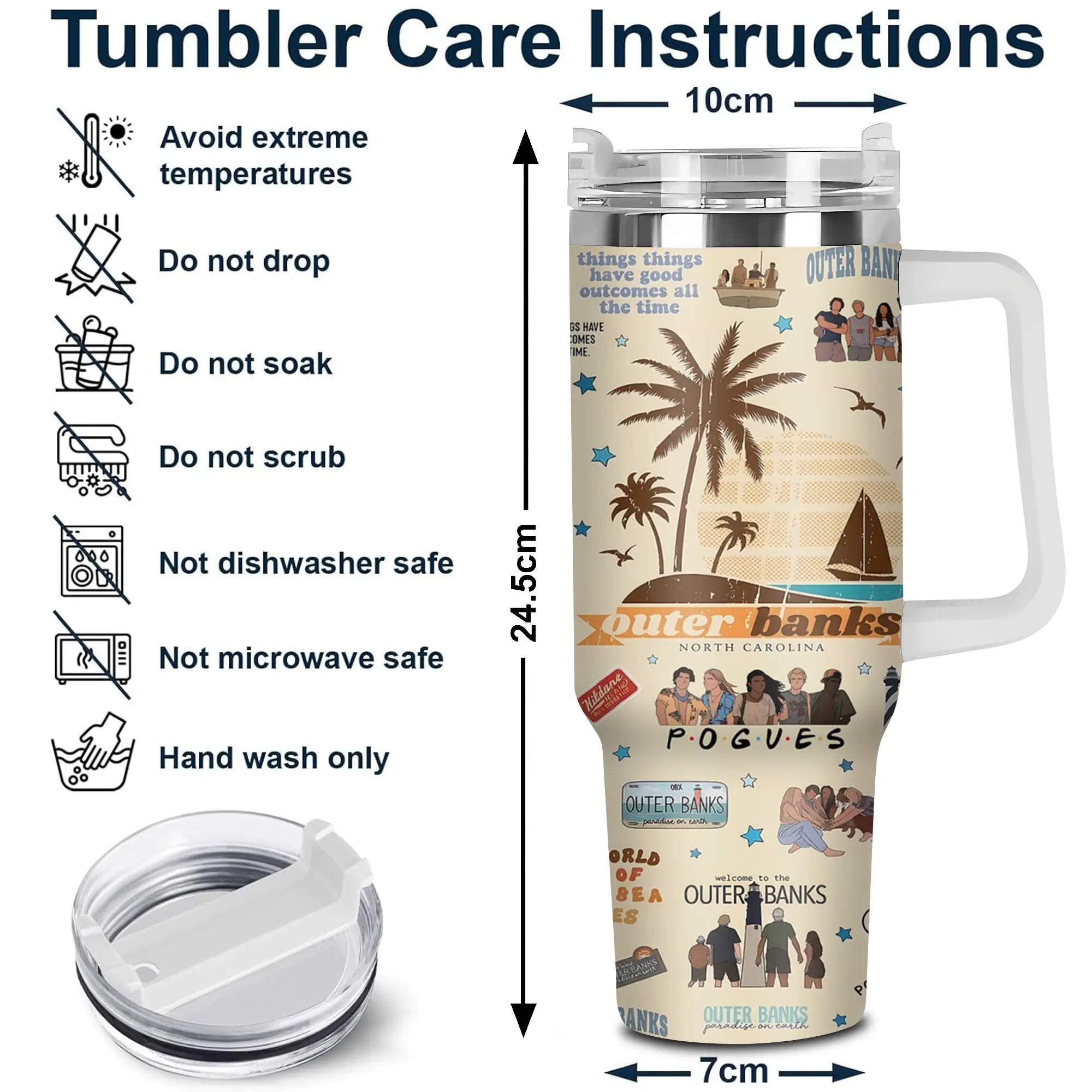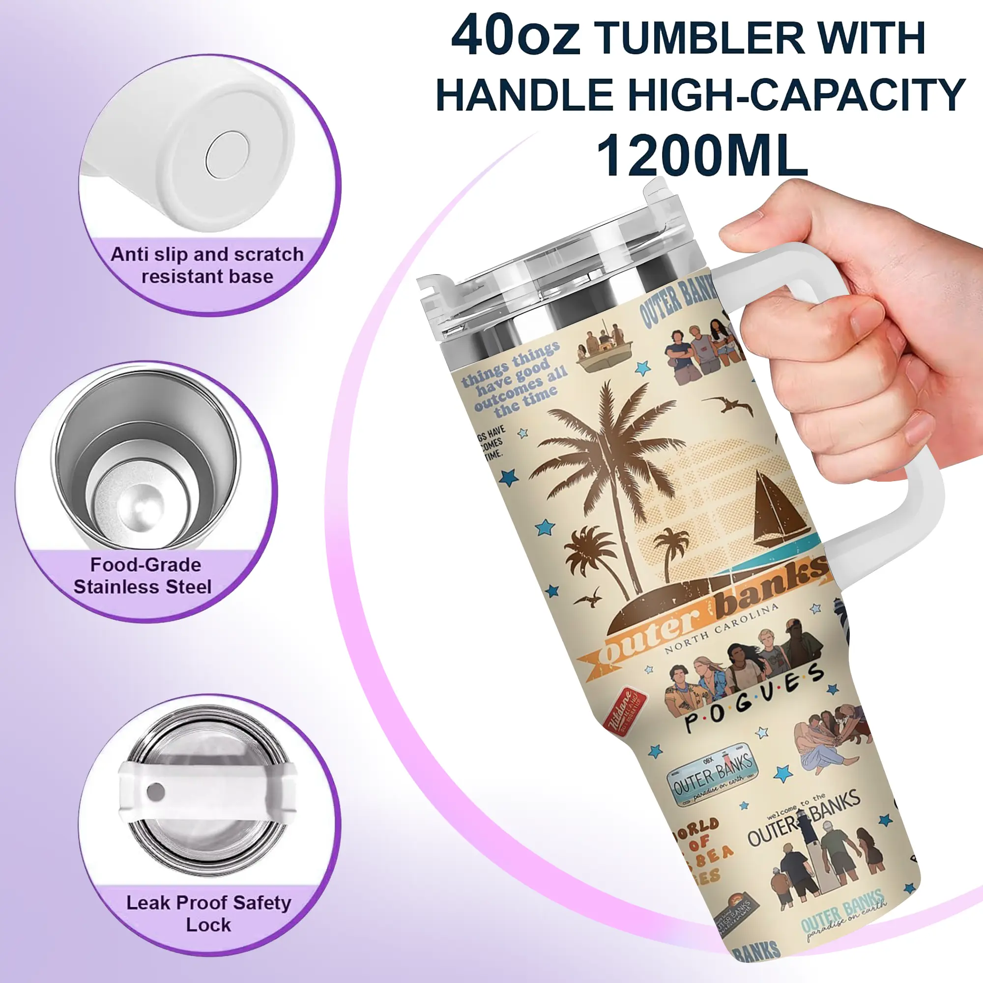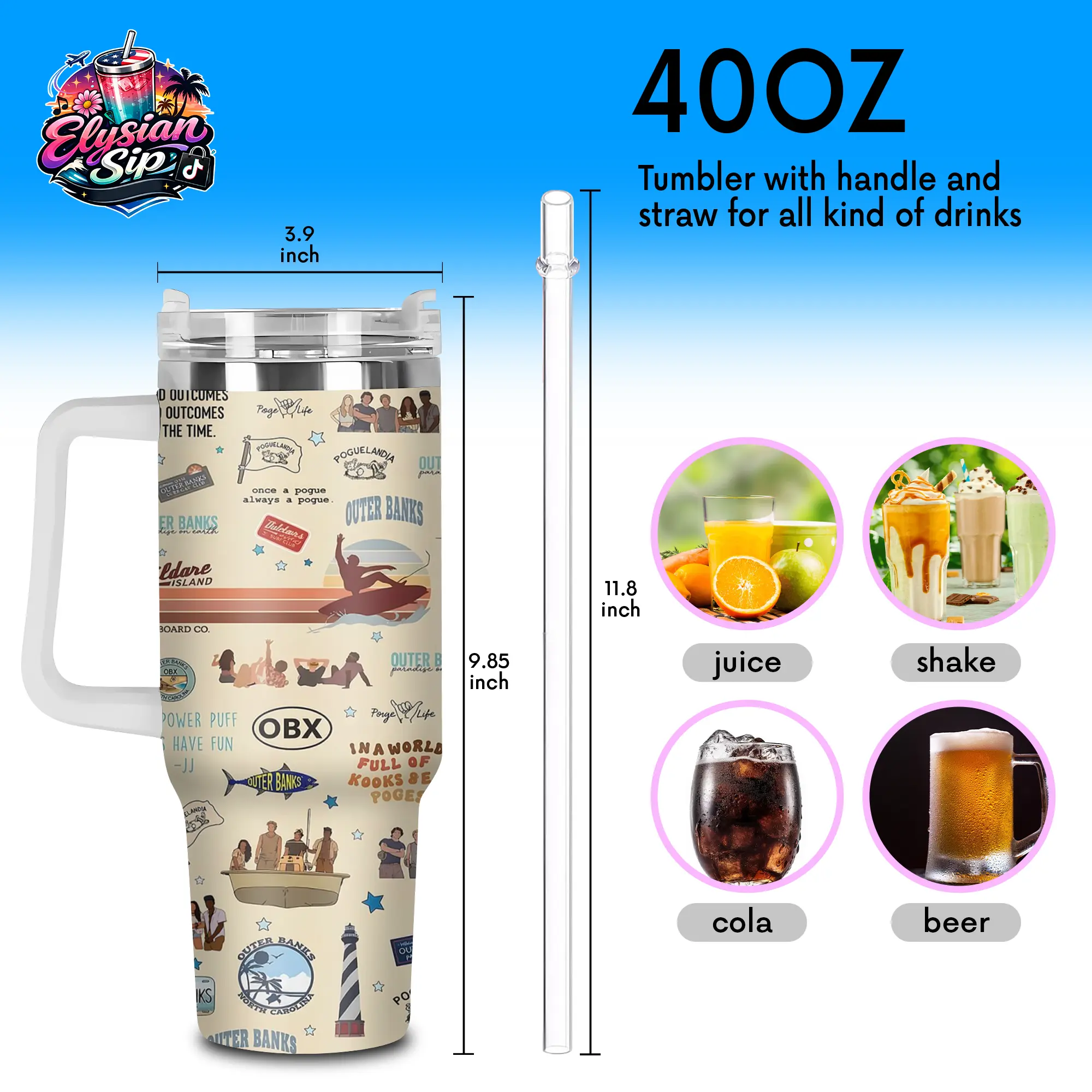 [Elysian Sip] - Outer Banks OBX Aesthetic 40oz & 20oz Stainless Steel Tumbler with Handle – Beach Adventure Fan Insulated Mug, Coastal Summer Vibe Cup, Teen Series Street Style Design, Leakproof Travel Gift.