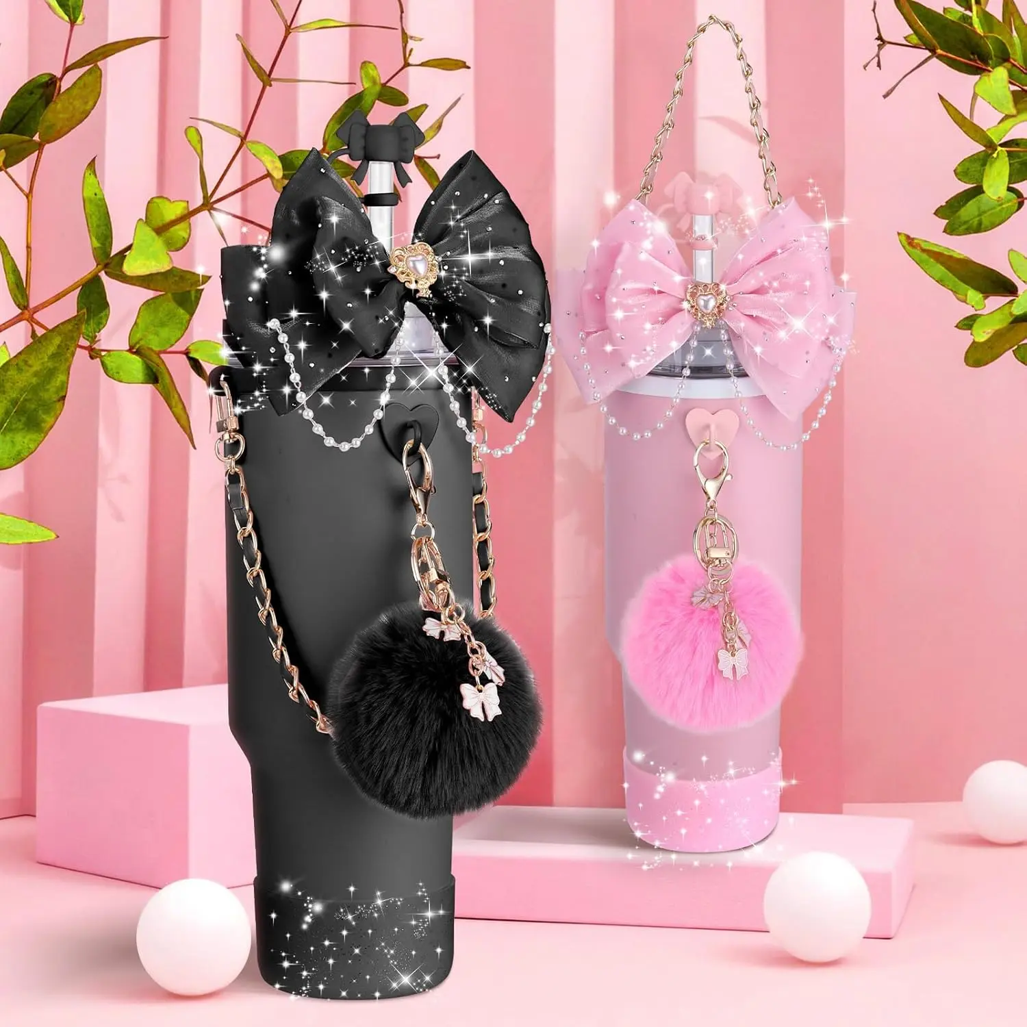 This black accessory set is girly and charming, adding a playful touch to your Stanley Cup. The set revolves around the black bow theme, ensuring harmonious and eye-catching design. It enhances your daily hydration routine with a stylish and personalized look. Perfect for those who love a touch of elegance in their everyday items.