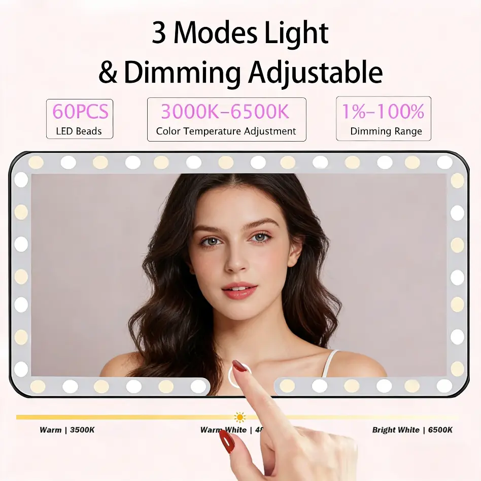 【Effortless Touch Controls】: A simple tap on the dual-touch buttons turns the lights on/off and adjusts brightness. Customize the lighting to match your needs—whether you’re doing a quick lipstick touch-up or a full-face refresh.