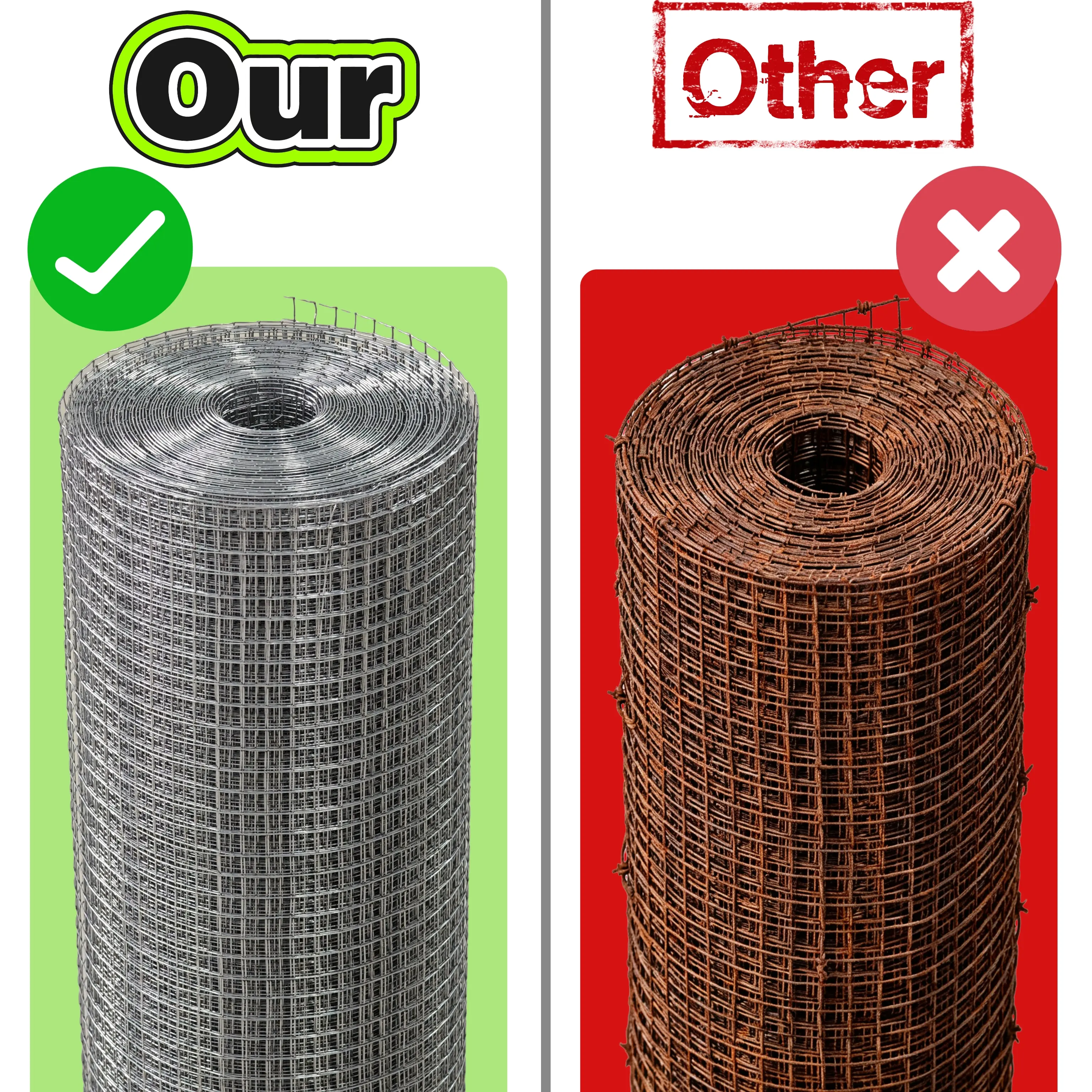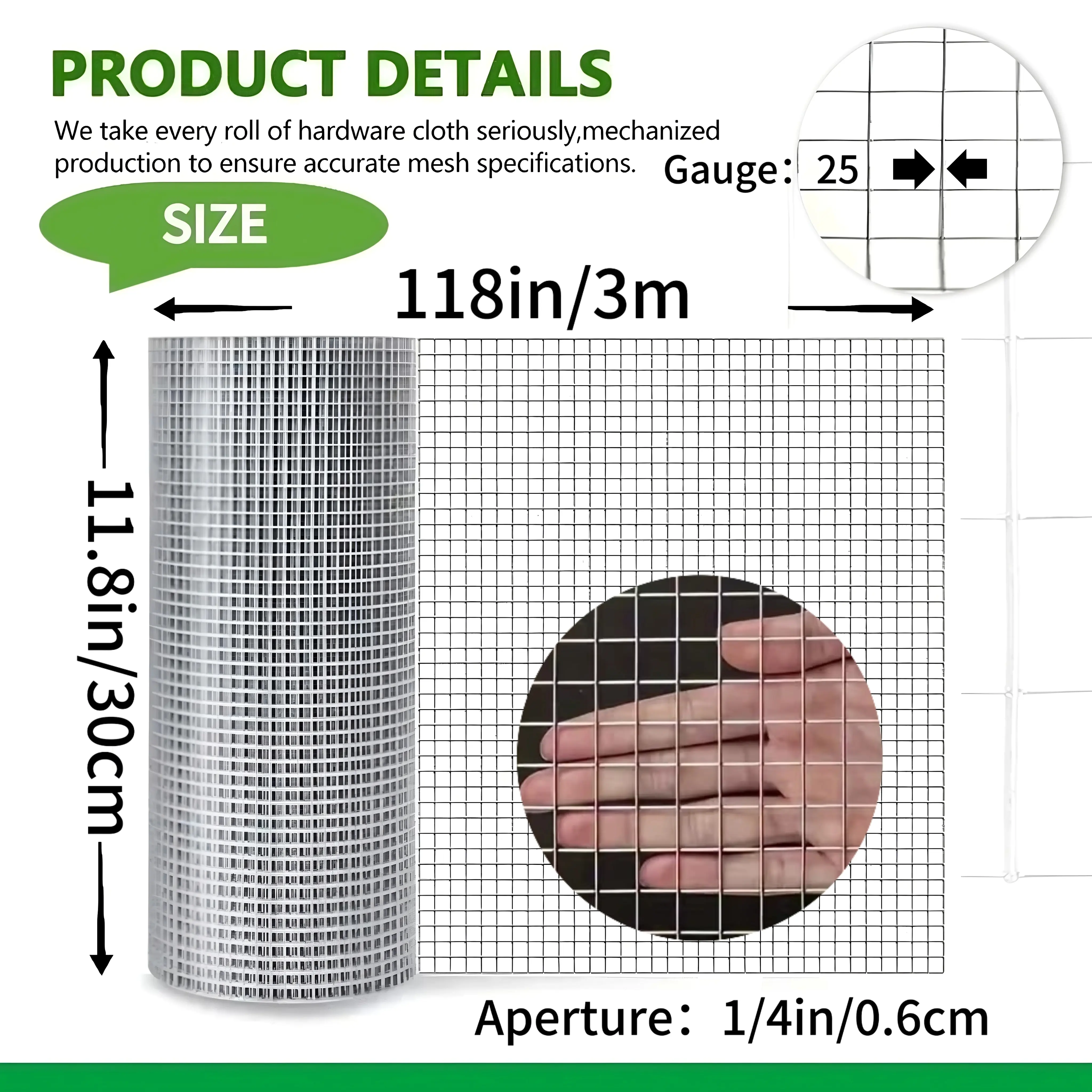 ·Robust Welding Structure: This 11.8in*118in mesh is made from low carbon steel wire, welded for strength. Galvanized to prevent peeling, it remains rust-proof under various weather conditions. 🌦️