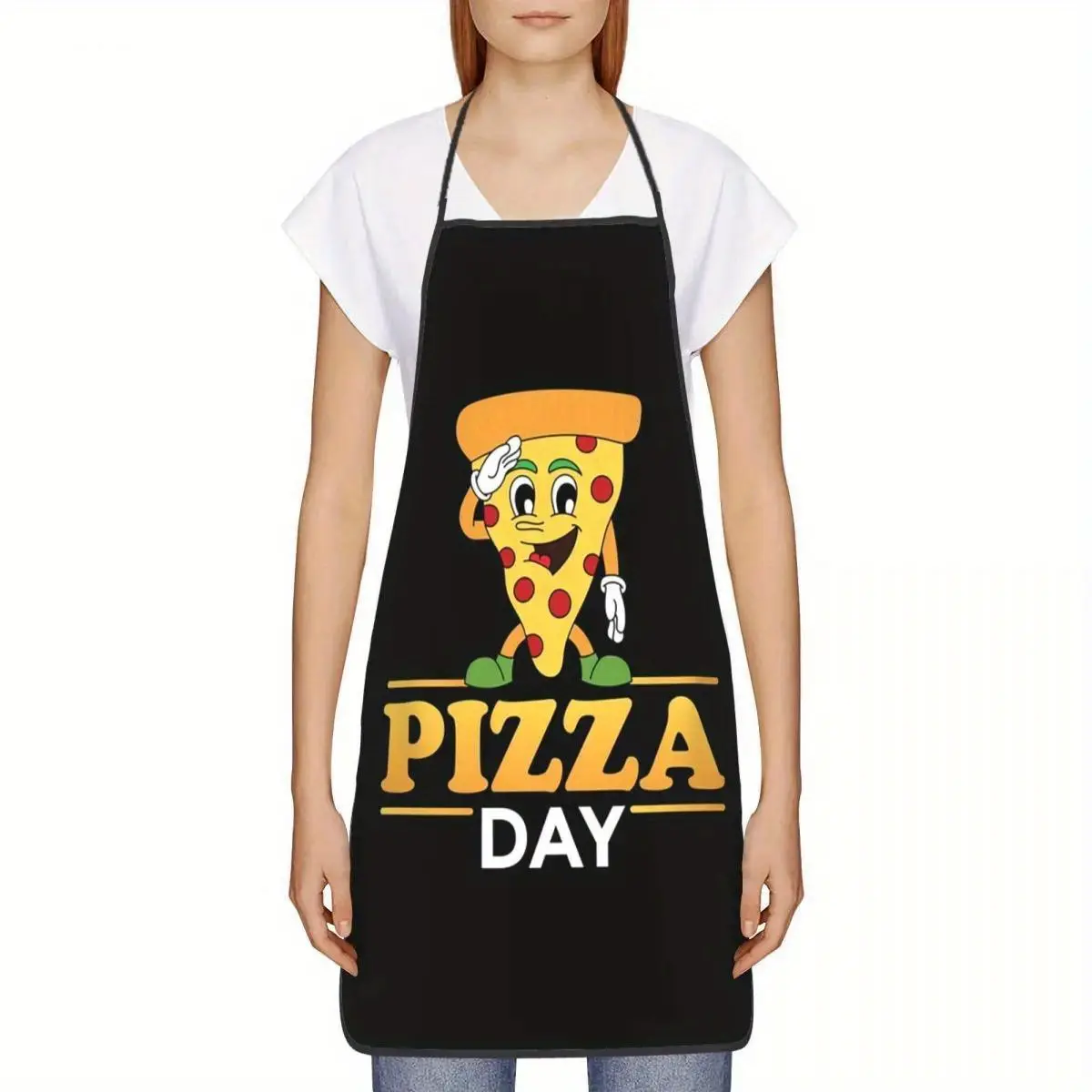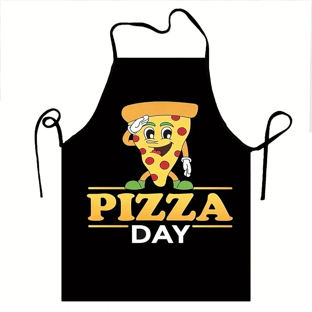 Cartoon Pizza Day Apron, Adult Chef Cooking & Baking Apron, Food Lovers Gift, 100% Polyester, 135g/m², Woven Fabric, Kitchen Chef Apron