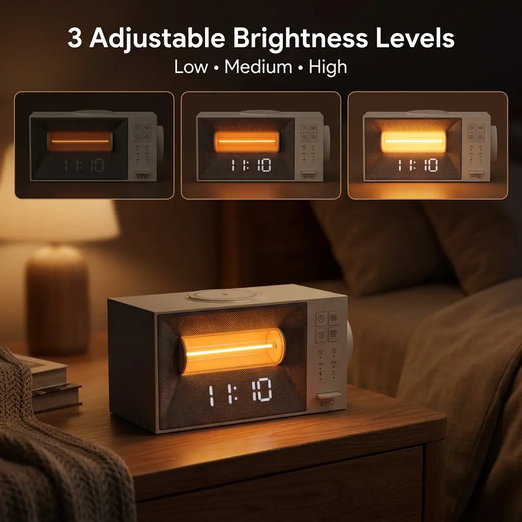 Start your day right with the dual alarm clock. It features natural sleep sounds to help you wake up gently. The clock ensures you wake up on time with a soothing soundtrack. Perfect for those who need a gentle wake-up call. Enjoy a restful night and a smooth start to your day.