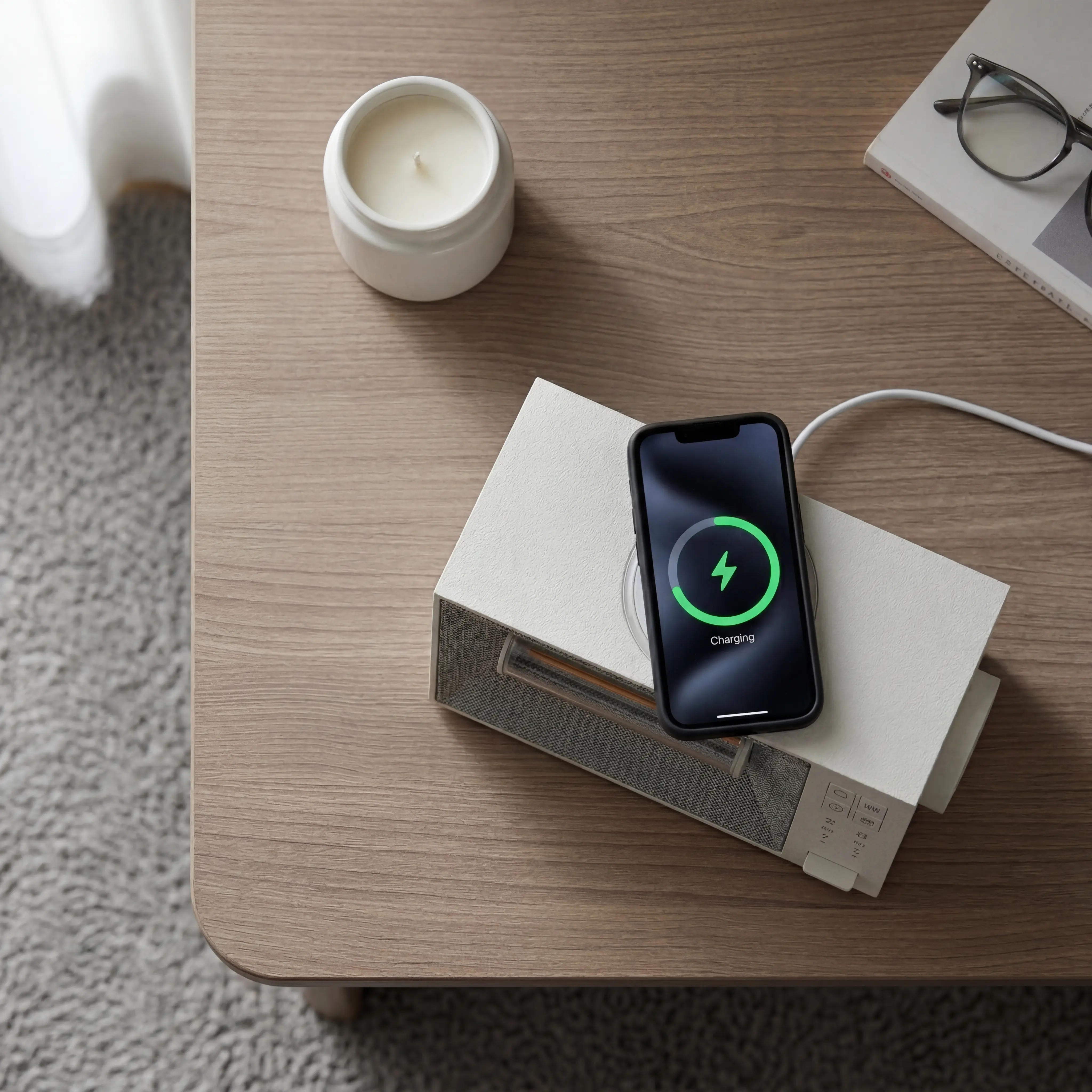Stay connected without the hassle. This bedside lamp includes a 15W wireless charger. Charge your devices effortlessly while you rest. The charger is seamlessly integrated into the lamp, ensuring convenience and functionality. No more tangled cords or the need for additional chargers.