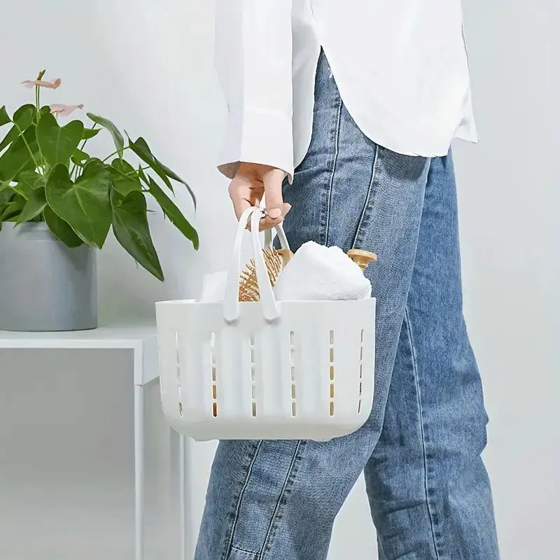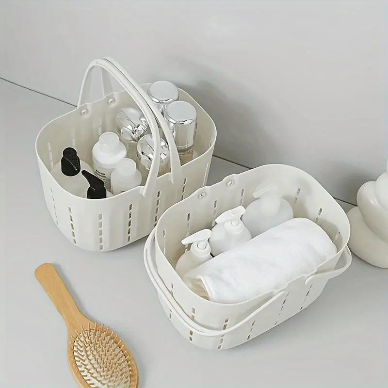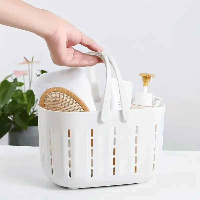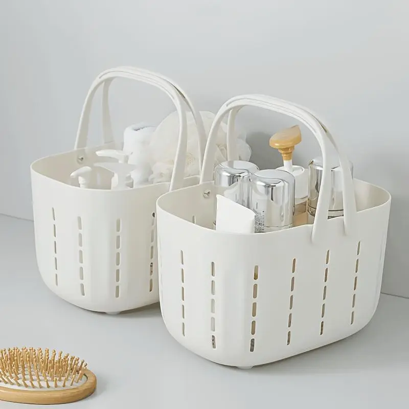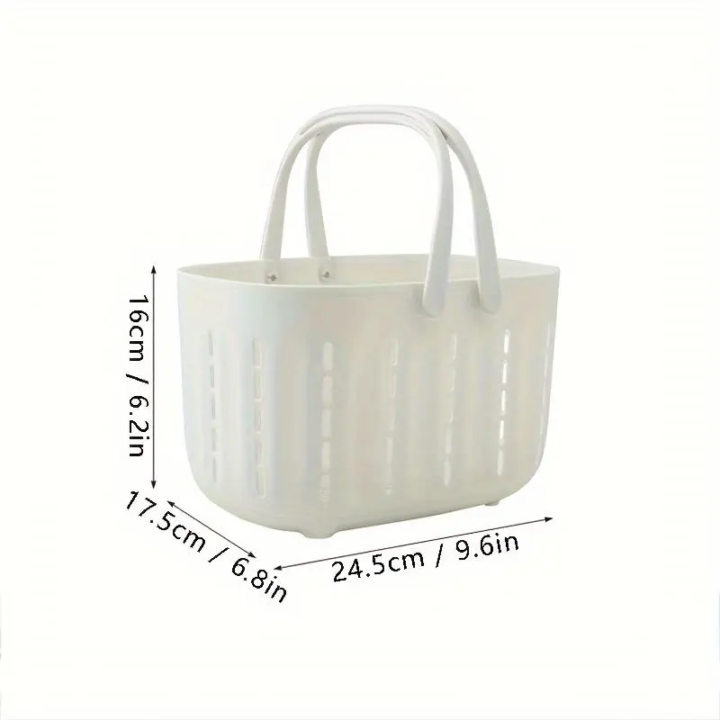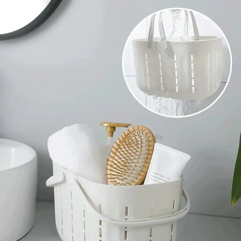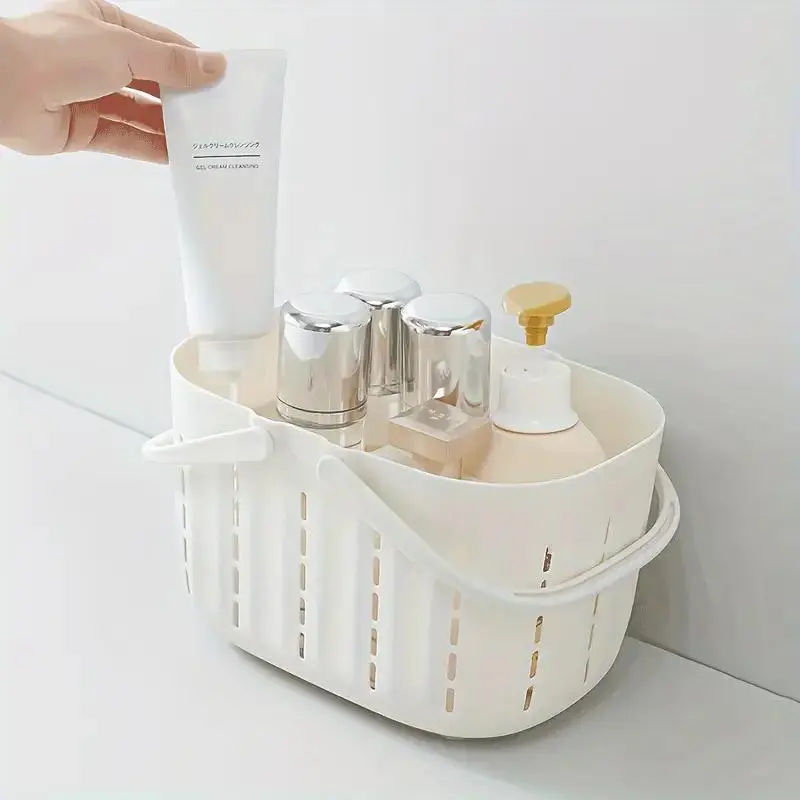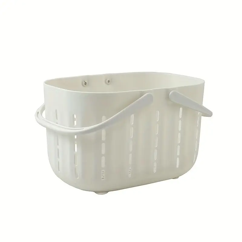 1 Shower Storage Basket with Drain Holes - No Installation, Lightweight Bathroom Storage Shelf with Handle, Suitable for Bathroom, Kitchen, Travel - Easy-Clean Plastic Material, Built-in Shower Organizer, Perforated Design, Sturdy Handle, Compact