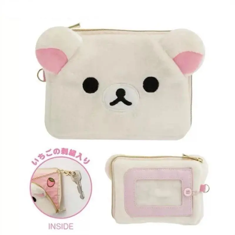 Rilakkuma Korilakkuma Plush ID Card Holder Pass Case Cartoon Bear Kawaii Cute Key Holder for Women Key Wallet Pouch