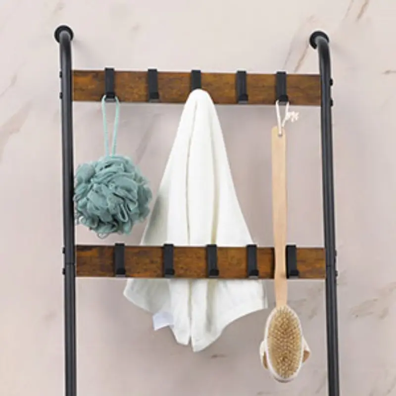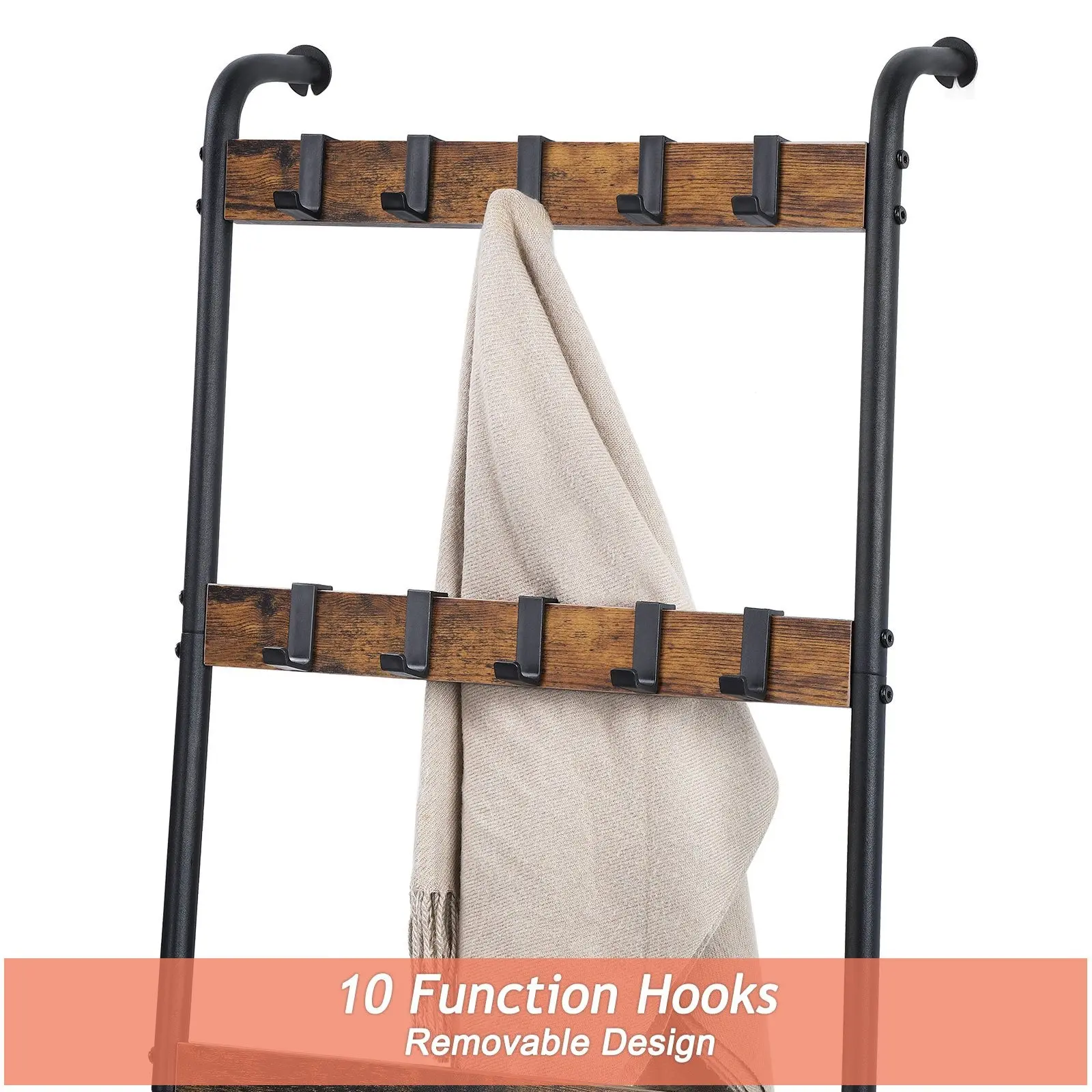Wardrobe quilt holder, blanket ladder, 5-tier towel rack with 2 rows of detachable hooks, wall tapestry rack, practical shelves, bathroom towel rack, decorative display ladder rack, scarf, industrial, living room, bedroom, bathroom