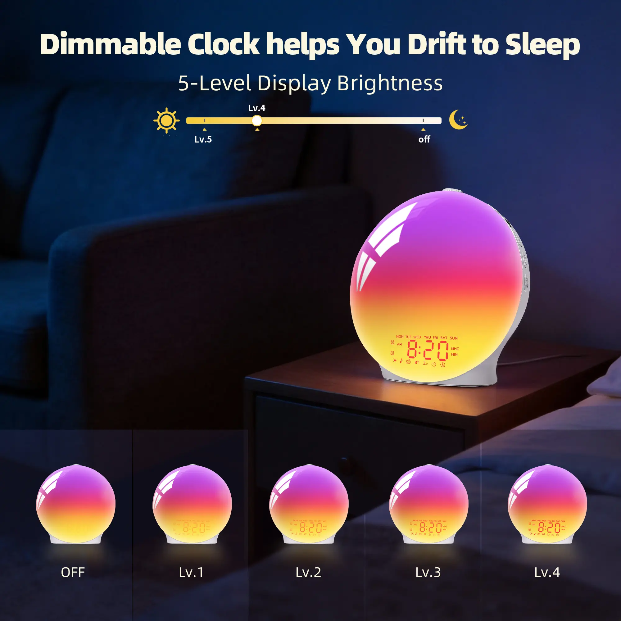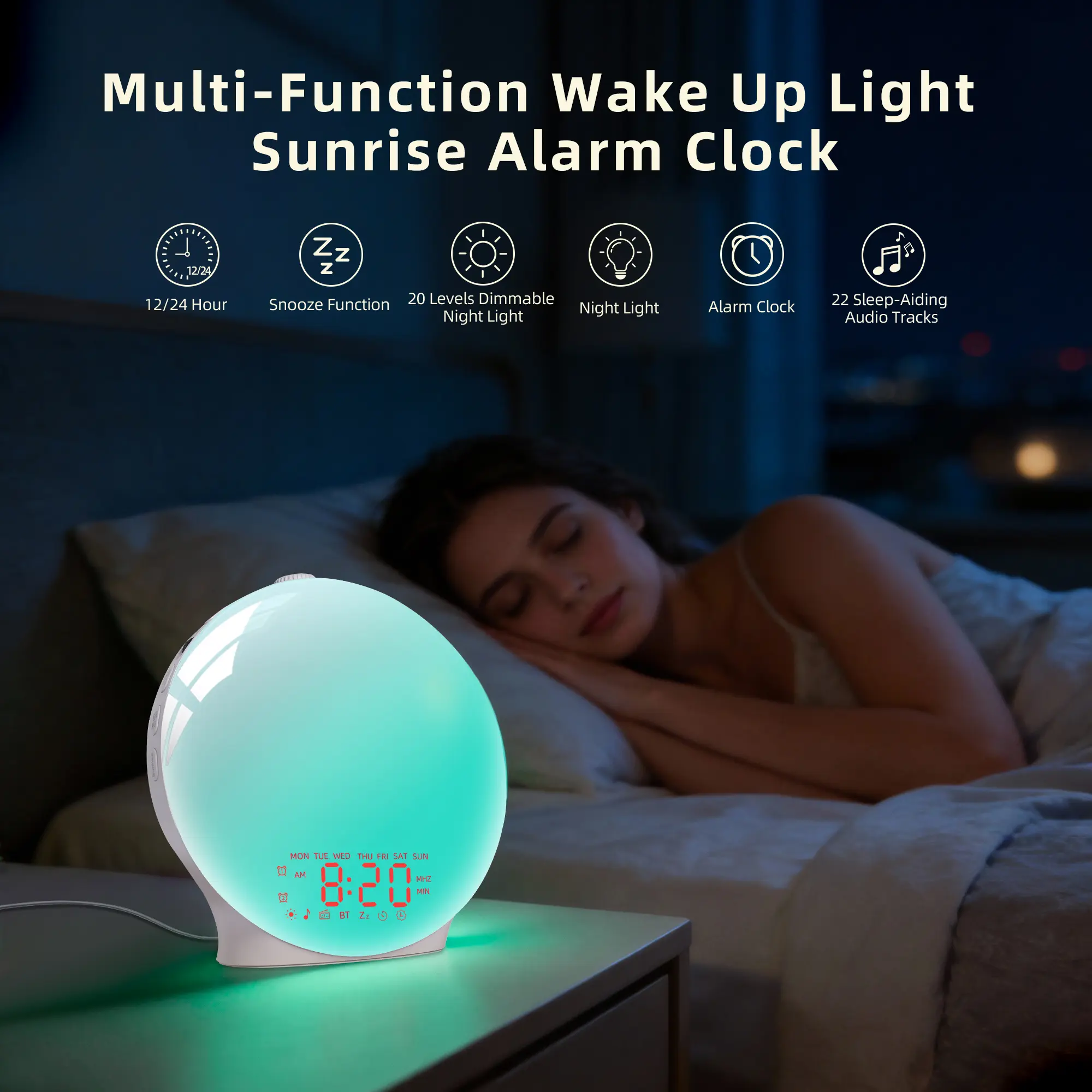 ·Gentle Sunrise Wake-Up LightGradually brightens for a gentler wake-up experience.