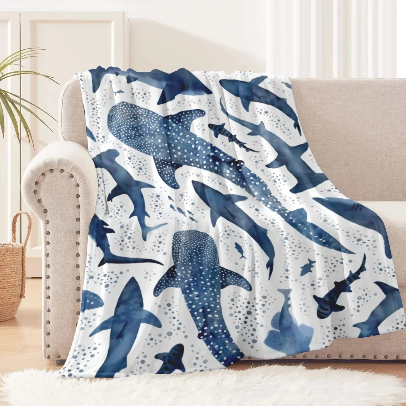 ·Ultra-soft shark print blanket designed for warmth, comfort, and stylish everyday use at home or on the go.