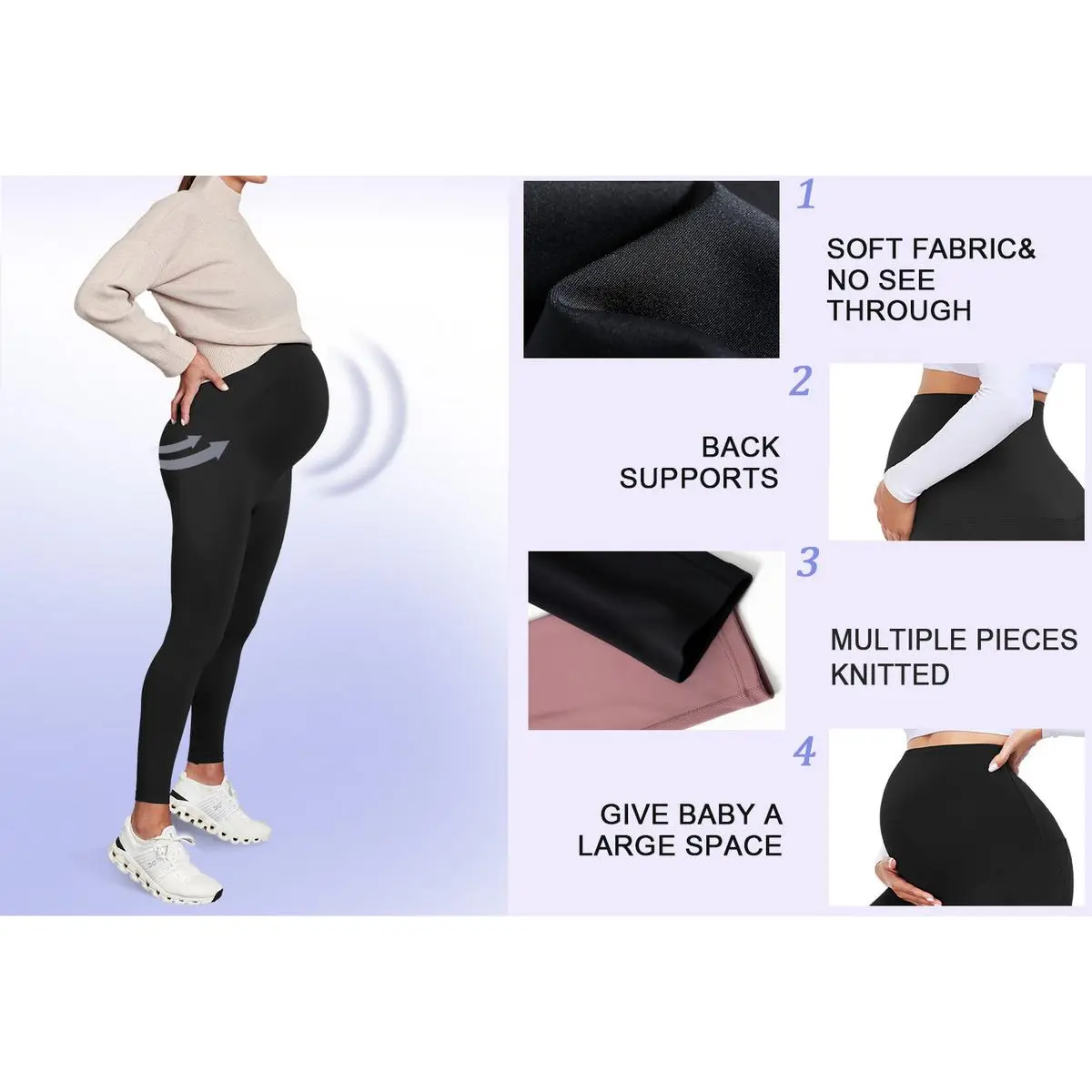 4 Packs Women's Maternity Leggings Over The Belly HighWaisted Yoga Workout Pregnancy Pants Activewear in Multiple Colors for Women