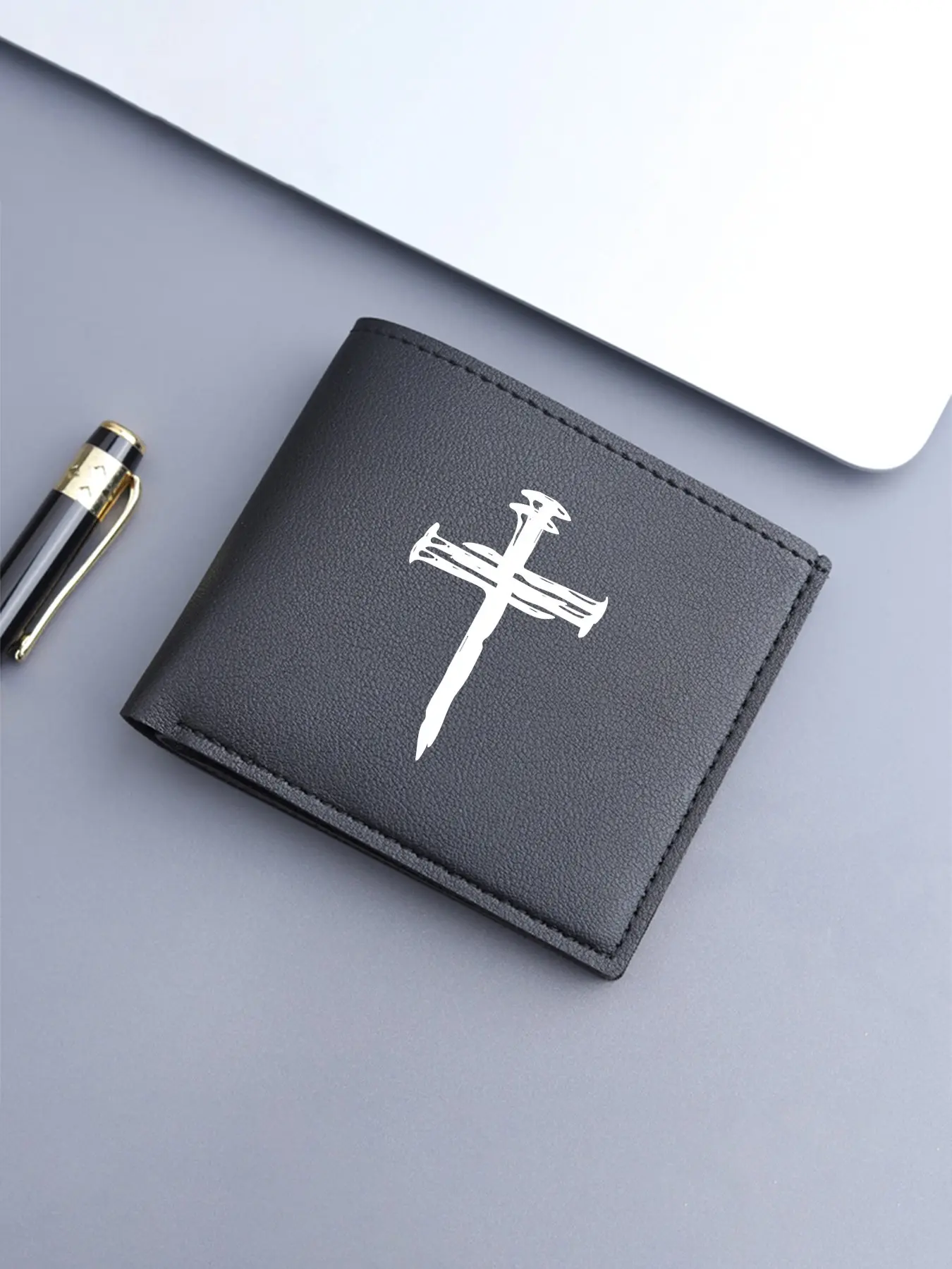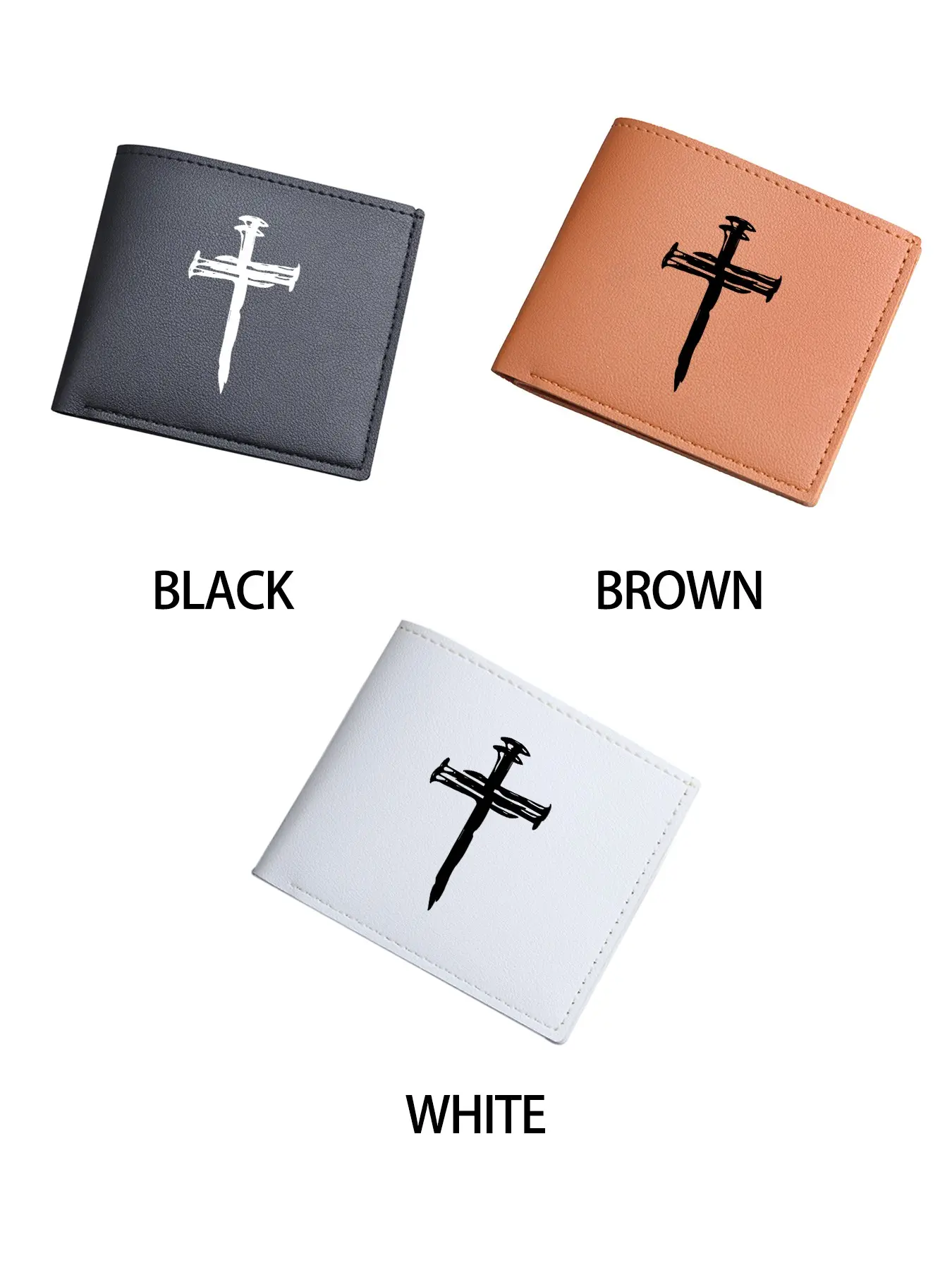 Vintage PU Leather Short Wallet, Jesus Cross Faith Print, Multi-Card Slots, Zipper Coin Pocket, Christian Believer Daily Commuter Purse