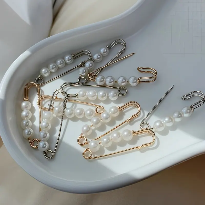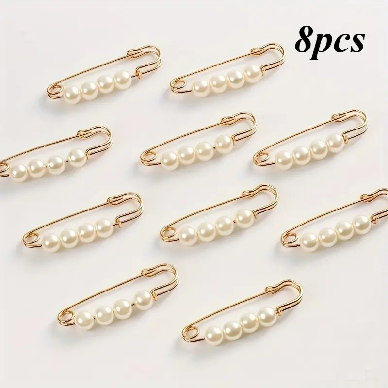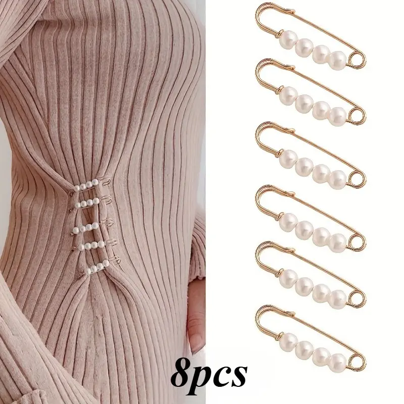 8pcs No-Sew Clothing Clips - Adjustable Buckle with Detachable Pearls, for Dresses, Shirts, Pants, Garments - Elegant Fasteners for Wedding, Party, Everyday Outfits - Durable & Easy Application, Fashion Embellishments, Chic Design, Polished Look