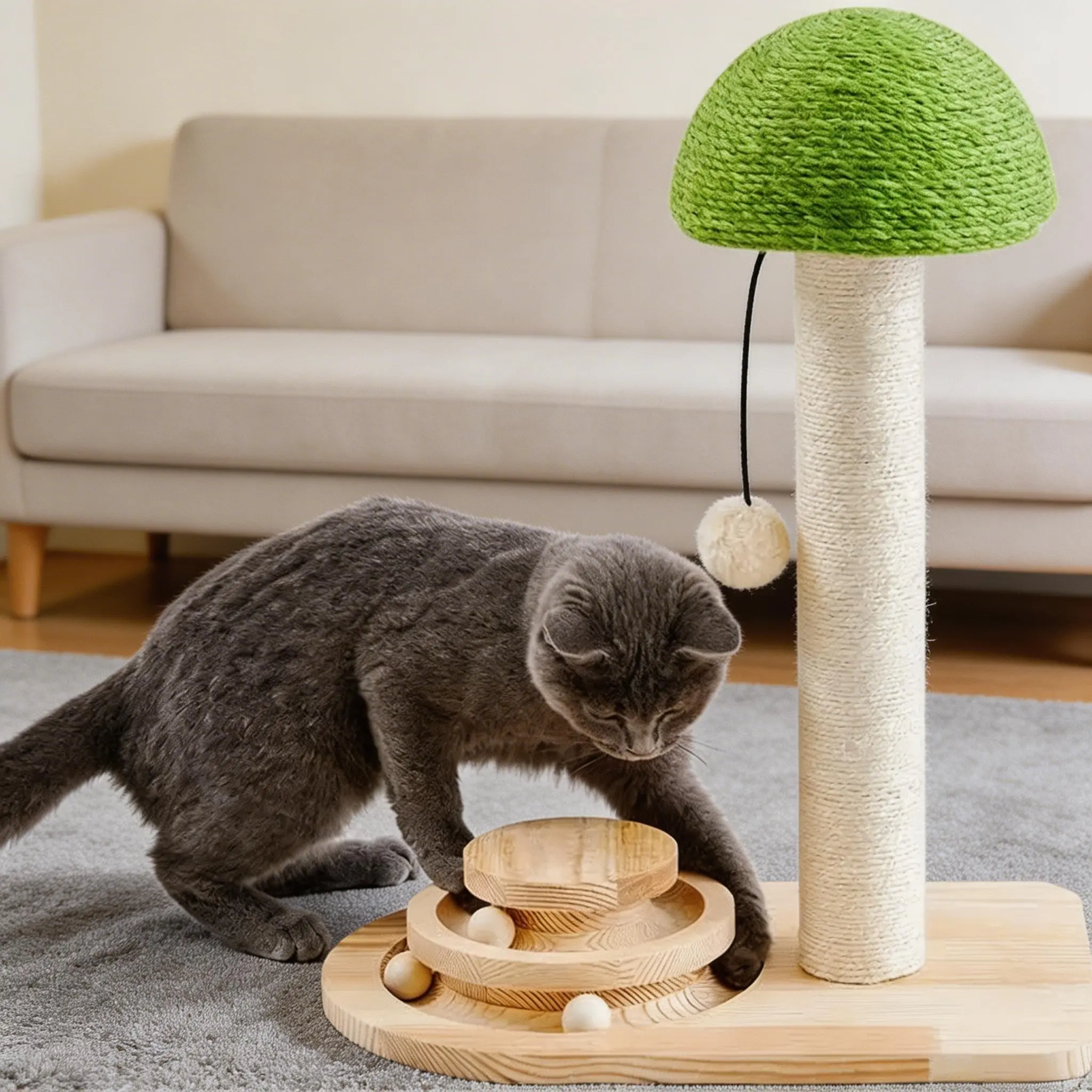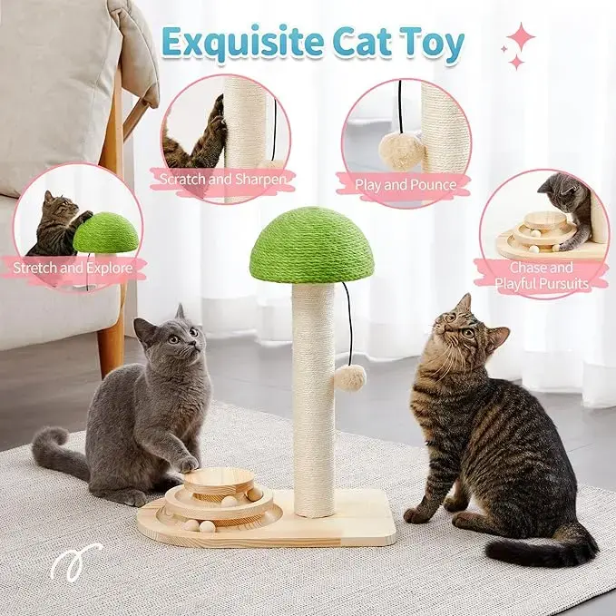 Full Natural Sisal CoverageBoth the mushroom cap and the post are fully wrapped in 100% natural sisal rope, satisfying your cat's instinct to scratch, protecting your furniture and sofa from damage, and keeping their claws healthy.