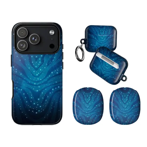 Our premium protection set is engineered for ultimate durability and a high-end feel. Available for the full iPhone 11–17 Pro Max lineup, along with matching earbud cases and over-ear headphone earcup covers. Each piece is crafted from impact-resistant, high-grade hard shell material that provides a sturdy defense against daily drops and scratches. We use a specialized high-definition printing process to ensure the vibrant blues and sparkling details remain crisp and fade-resistant, even with heavy daily use. Precision-molded for a seamless fit, you’ll enjoy full access to all buttons, speakers, and ports.