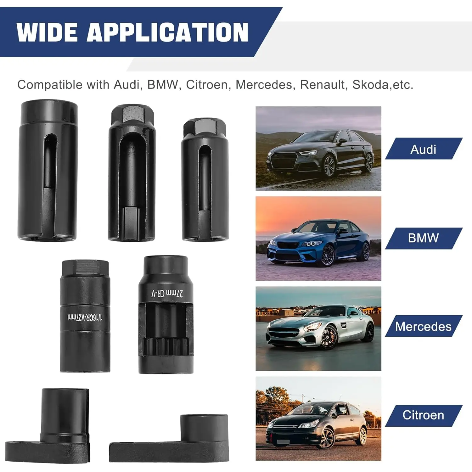 DASBET 7pcs O2 Oxygen Sensor Set is for removal and installation of oxygen sensors, oil pressure sending units, diesel injectors, vacuum switches, and thermal sensor switches.