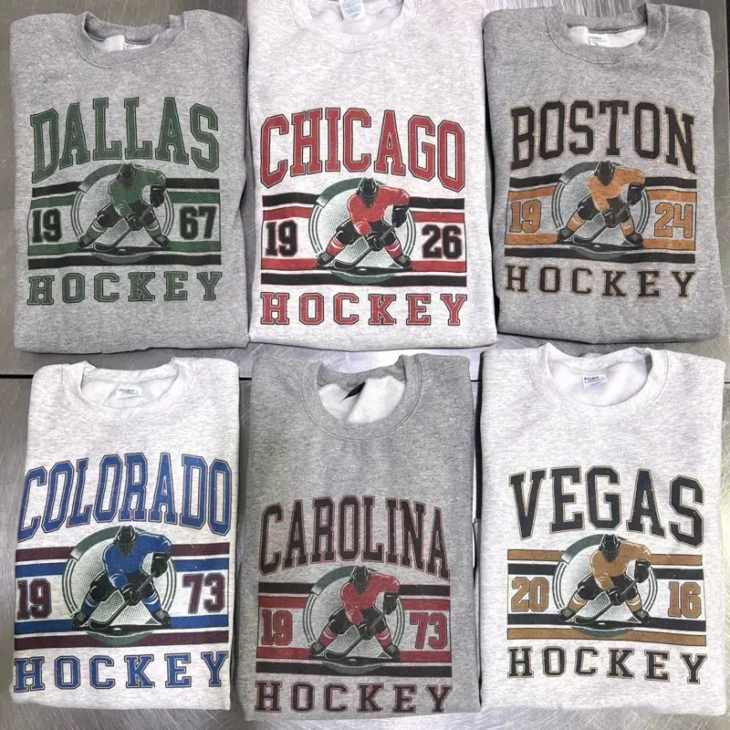 Vintage Hockey Graphic Sweatshirts - White Color Sports Hockey City Pullovers Retro Sports Sweatshirts Casual Hockey Game Top -  PTS
