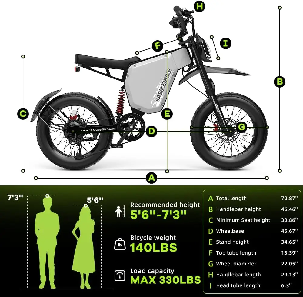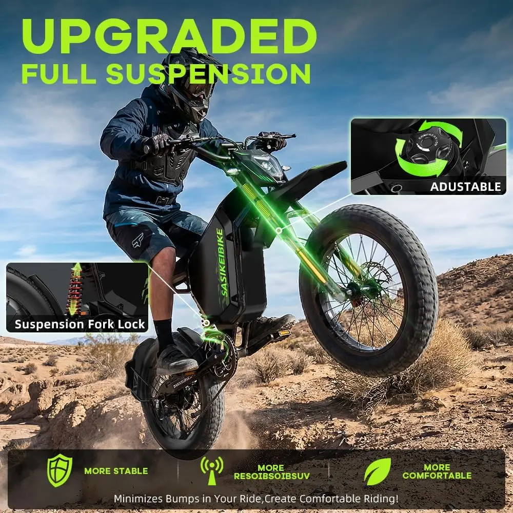 ·【Electric Bike 3000W Peak Motor & 1000+ Mile Range】3000W peak motor delivering effortless hill climbing and acceleration. The high-capacity 52V 35Ah battery supports speeds over 30 mph and a remarkable range of up to 100 miles per charge, making this electric bike for adults your ultimate long-range explorer and powerful daily commuter.