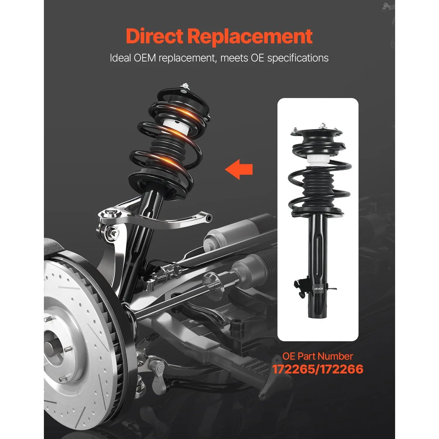 VEVOR Front Shock Absorber Strut Assembly, 2Pcs Shock and Strut Assembly with Coil Spring, Compatible with 2002-2006 Mini Cooper Convertible, Automotive Replacement Struts for OE 172265/ 172266