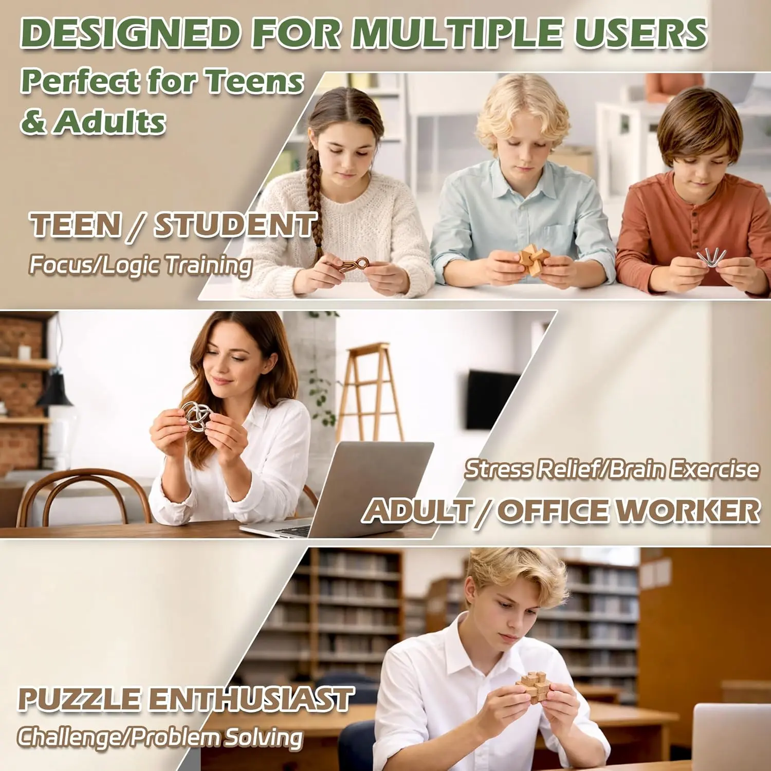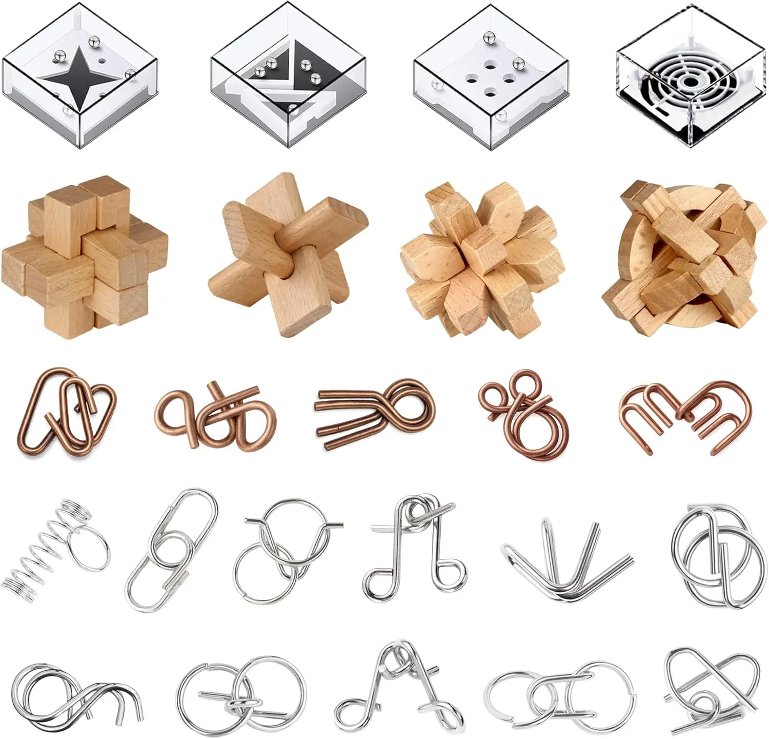 ·Durable Materials & Smooth Finish: Made from sturdy wood, stainless steel, and plastic, each puzzle is built for repeated use. Smooth edges and solid construction ensure safe handling and long-lasting durability