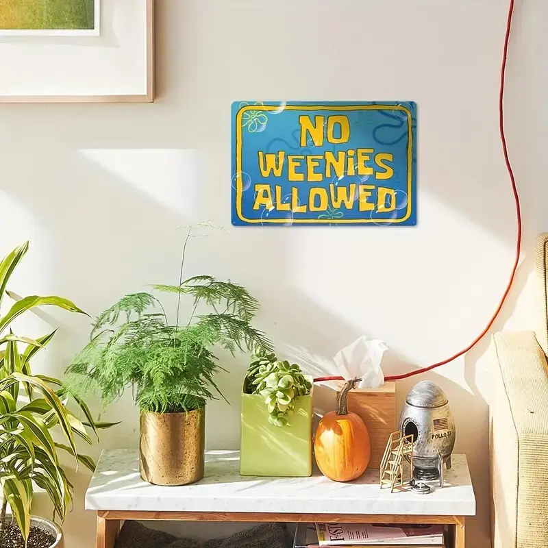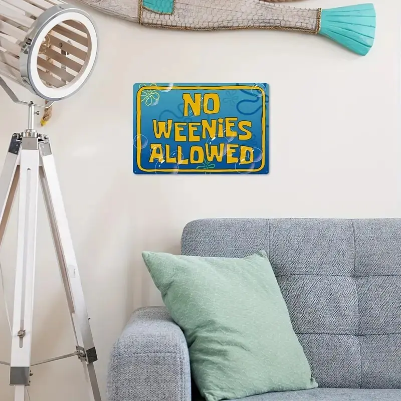 No Weenies Allowed" Retro Metal Sign - Funny Bikini Bottom Meme Wall Decor for Man Cave, Gaming Room & Bar