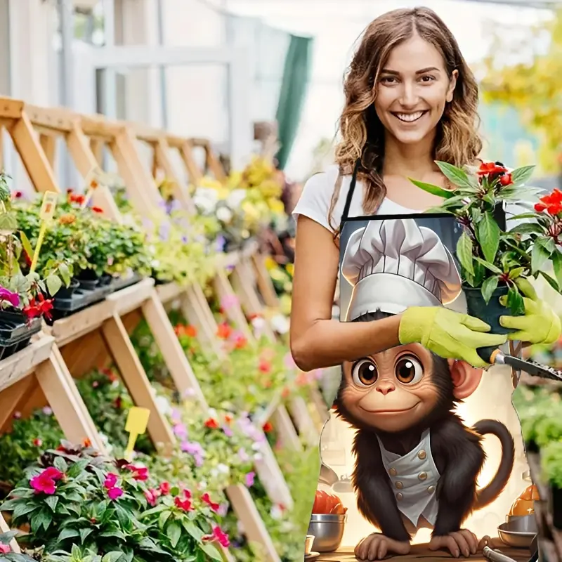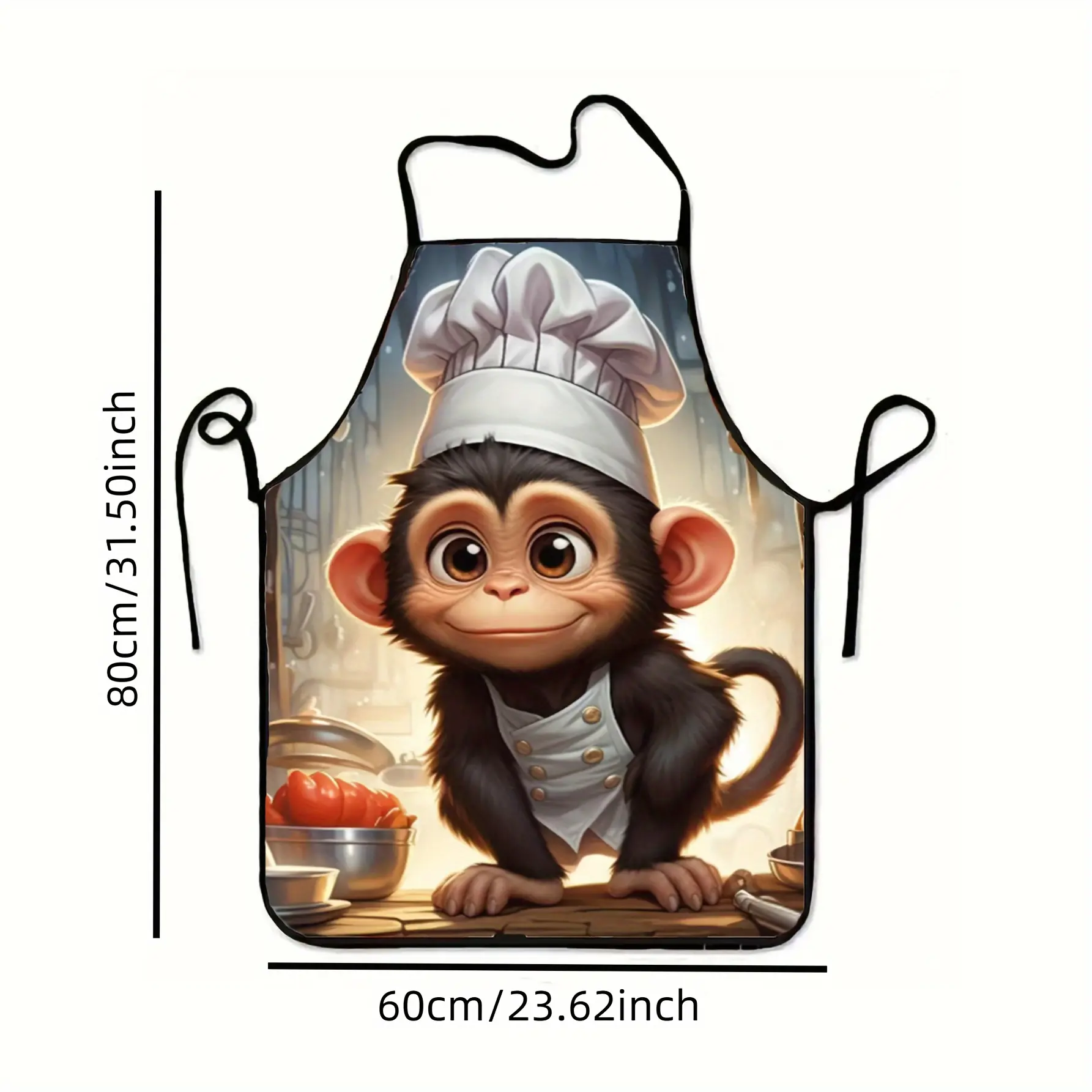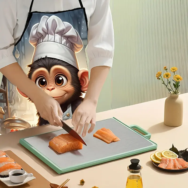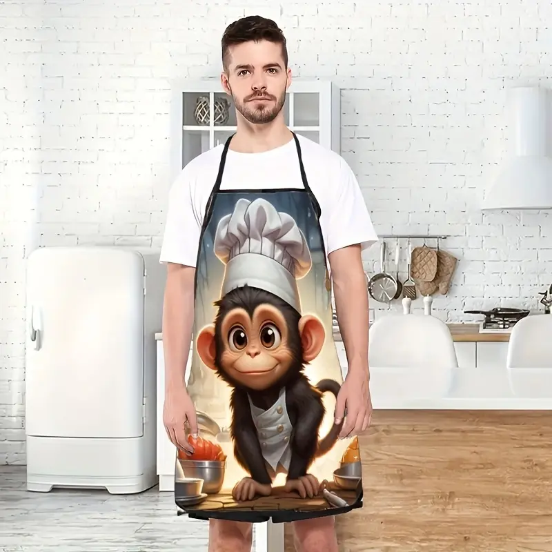 Funny Monkey Chef Hat Cartoon Kitchen Apron, Digital Print Design for Cooking & Dining