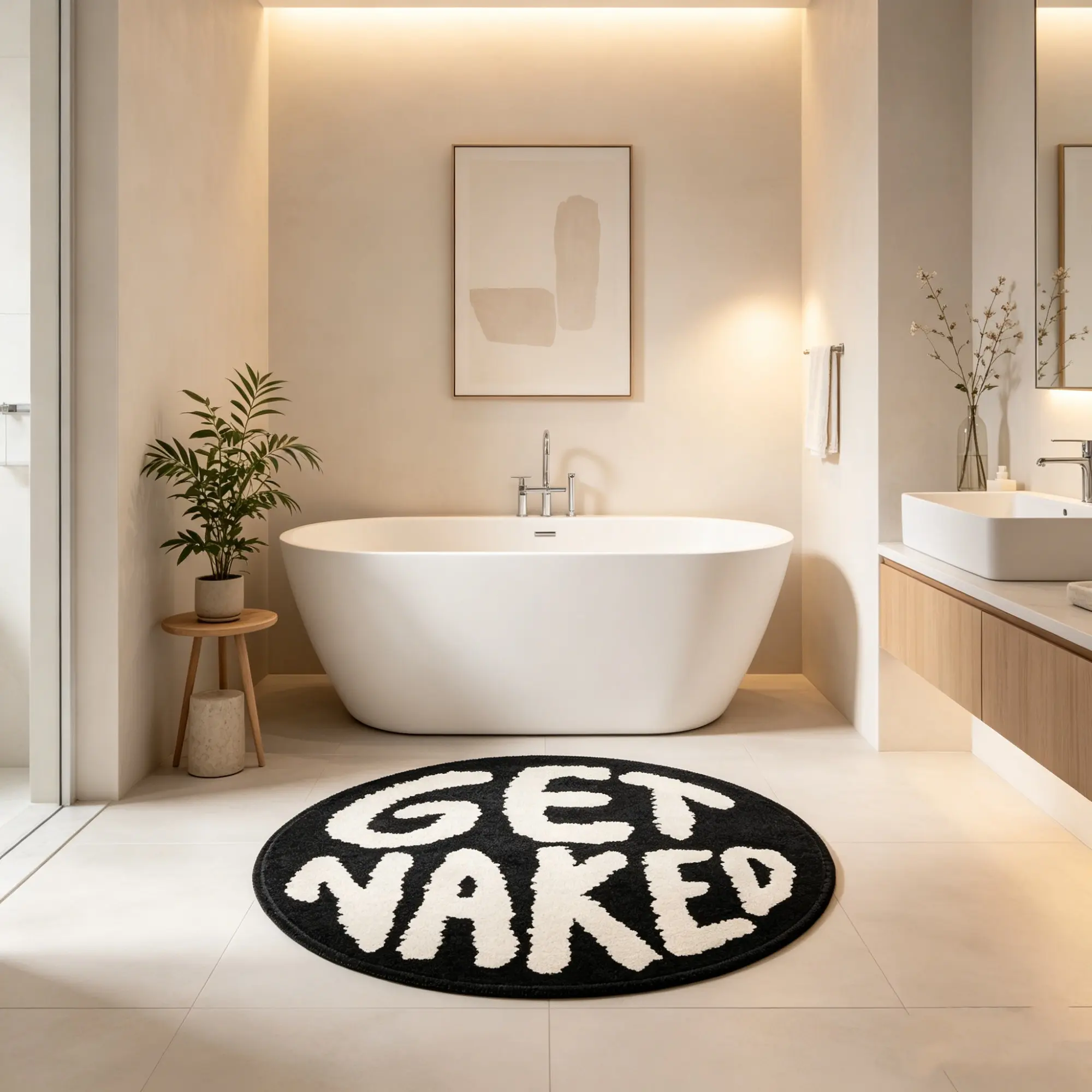 High-End Bathroom Rug, Fun 'get Naked' Round Mat, Soft Short Pile, Multi-Sizes, Easy Clean, Decorative Pad for Bedroom & Bath