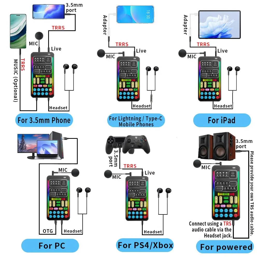 【High Device Compatibility】This sound device can be used on any mobile phone, computer, tablet, for Switch, for iOS system, for Android mobile system and any gaming . When using the voice charger with a PC, you need an adapter. The interface of this voice changer is 3.5mm, and the for iOS system needs to purchase an interface conversion cable to use it.