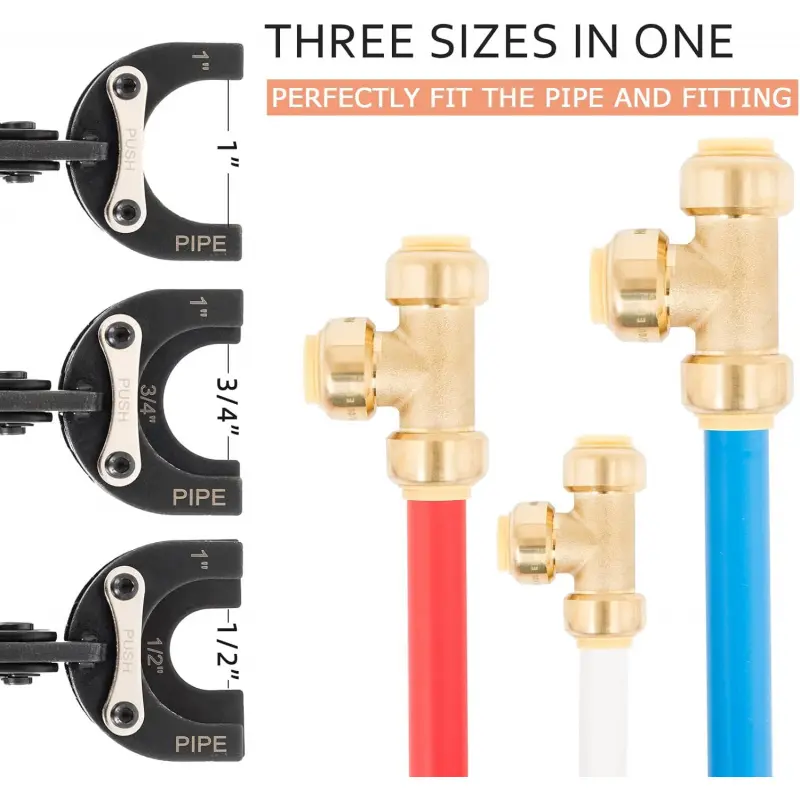 THREE SIZE IN ONE: This GIANNEER push fittings removal tool is designed to disconnect 3 sizes of plumbing fittings (1",1/2", 3/4").It is suitable on pipes such as copper, PEX and CPVC and is compatible with various brands of fittings.