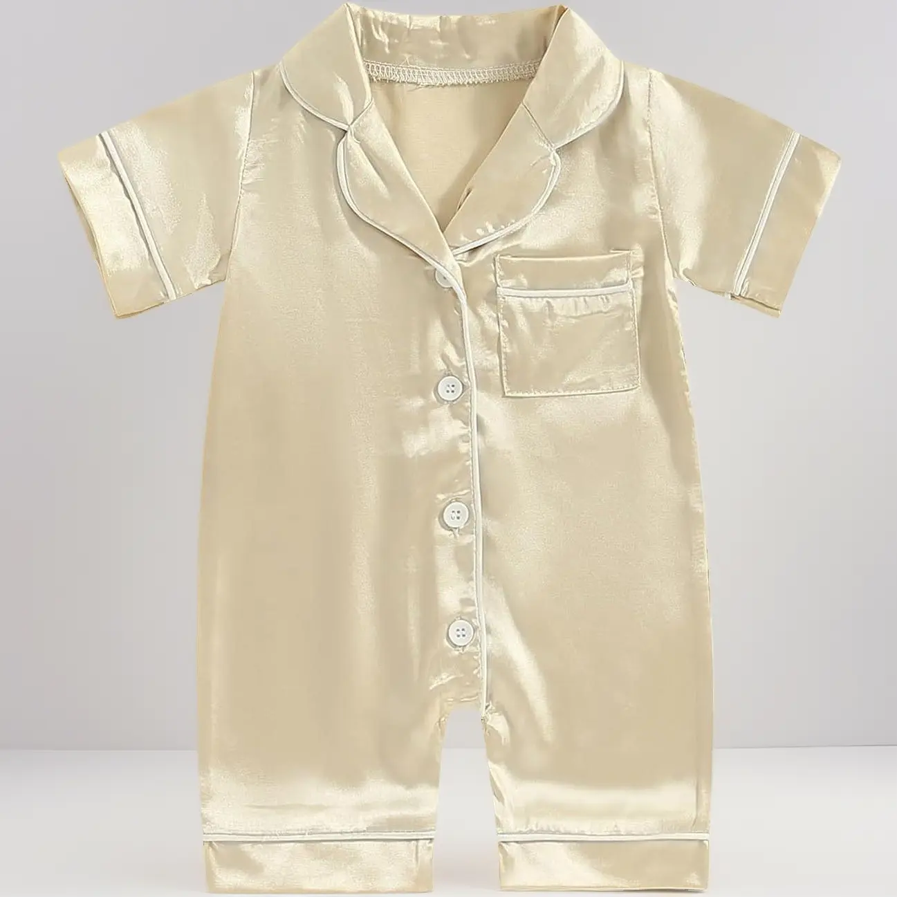 Newborn Baby Boy Girl Silk Pajamas Short Sleeve Button Up Satin Pjs One Piece Romper Onesie Shorts Baby Sleepwears