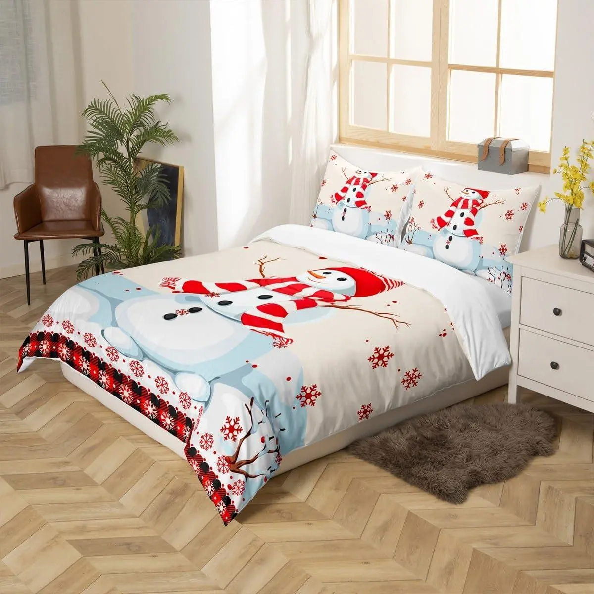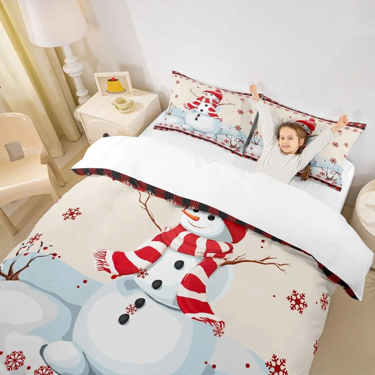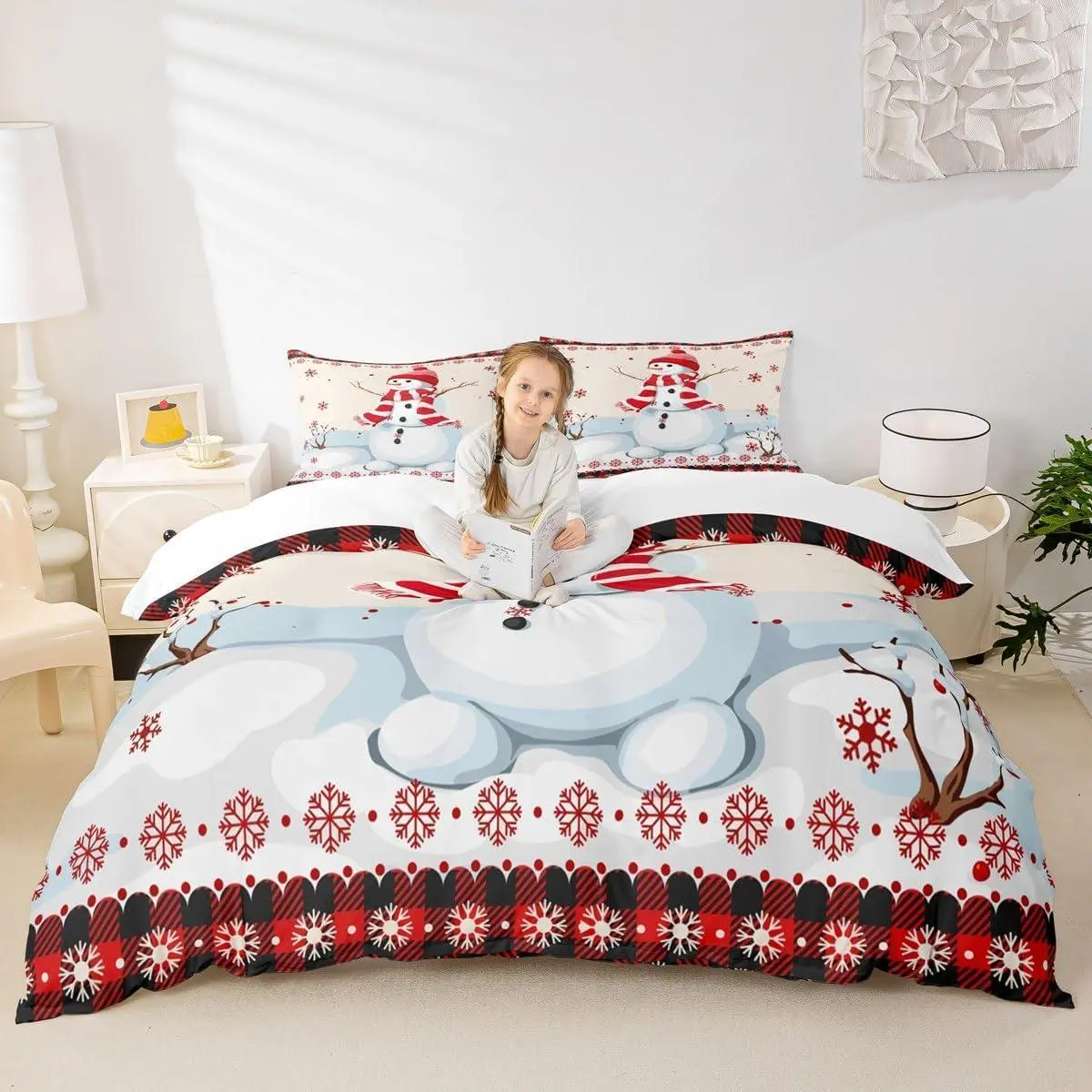 Kids Snowman Christmas Duvet Cover Setsnowflake Romantic Bedding,Girls Boys Adults Home/Xmas Cabin Decor,Geometric Grid Lattice Comforter Cover,Rustic Farmhouse Quilt Cover