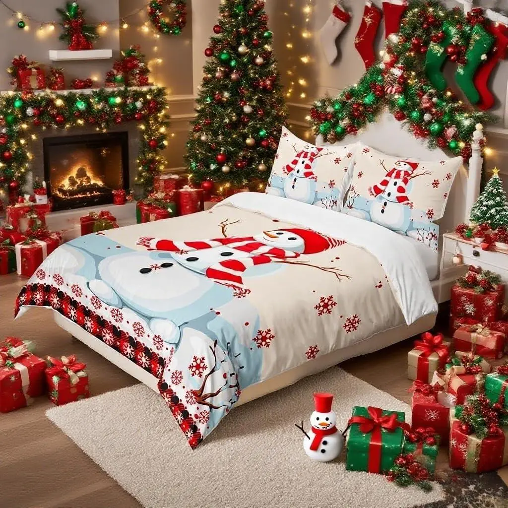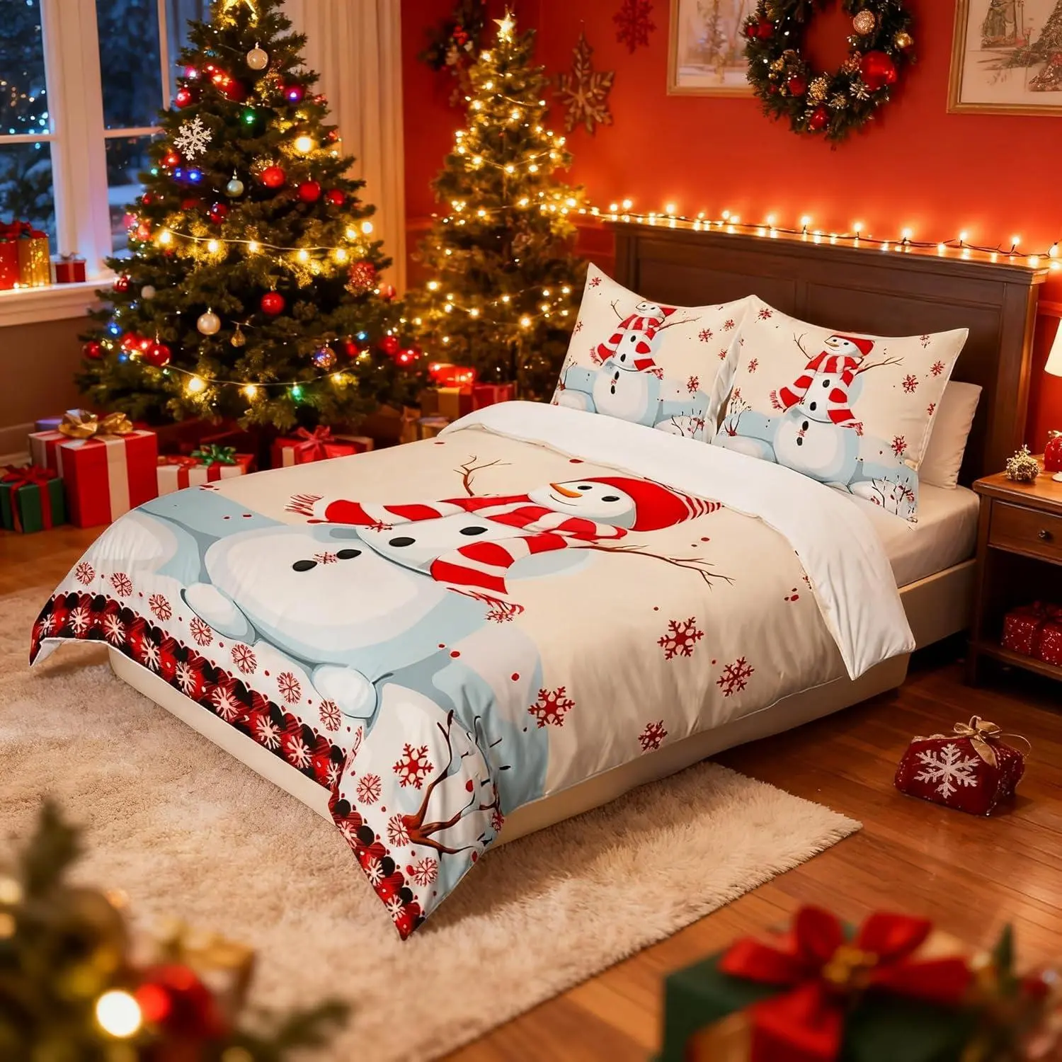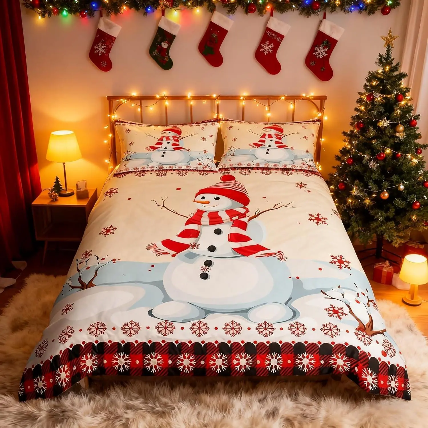 5. Kids Snowman Christmas Duvet Cover Setsnowflake Romantic Bedding,Girls Boys Adults Home/Xmas Cabin Decor,Geometric Grid Lattice Comforter Cover,Rustic Farmhouse Quilt Cover