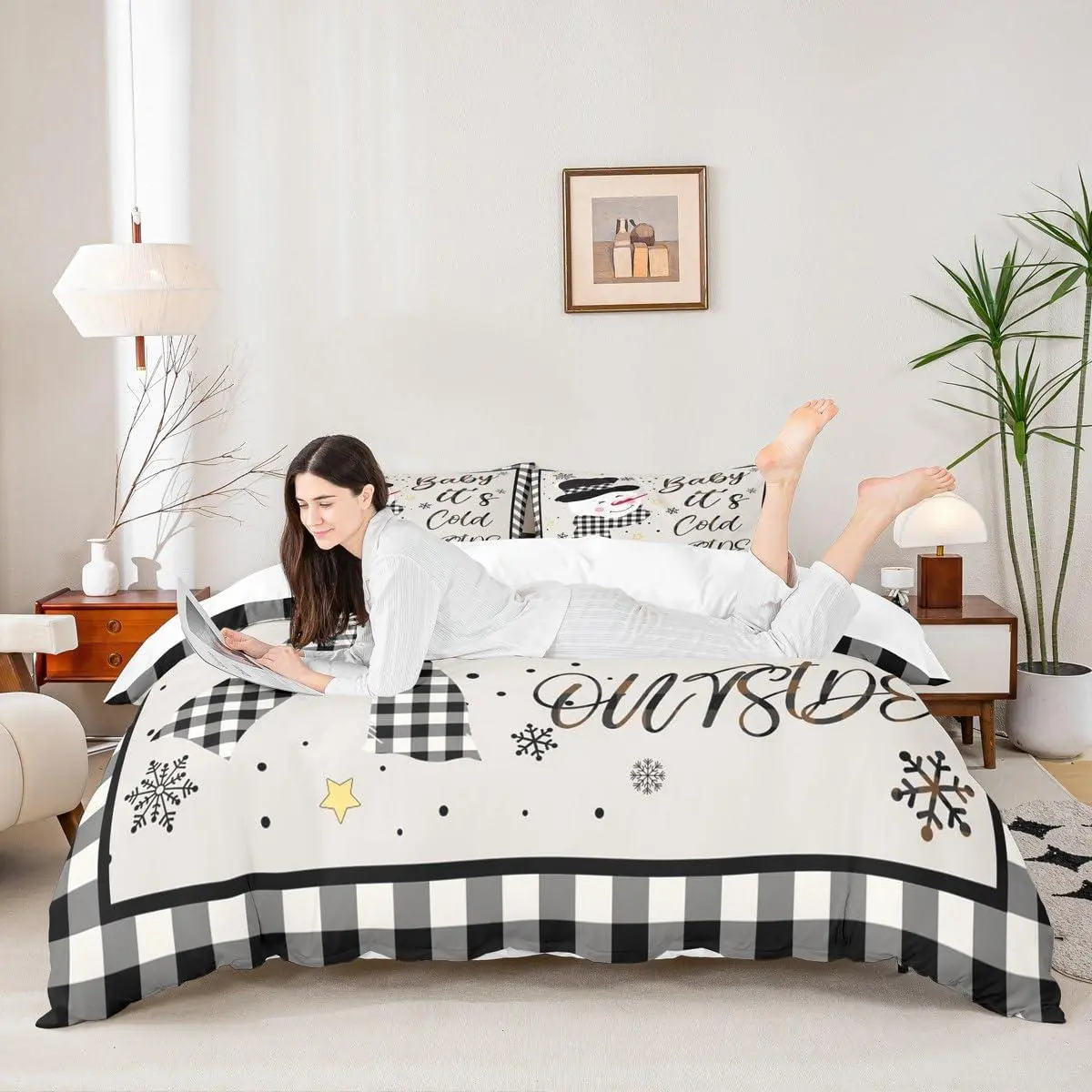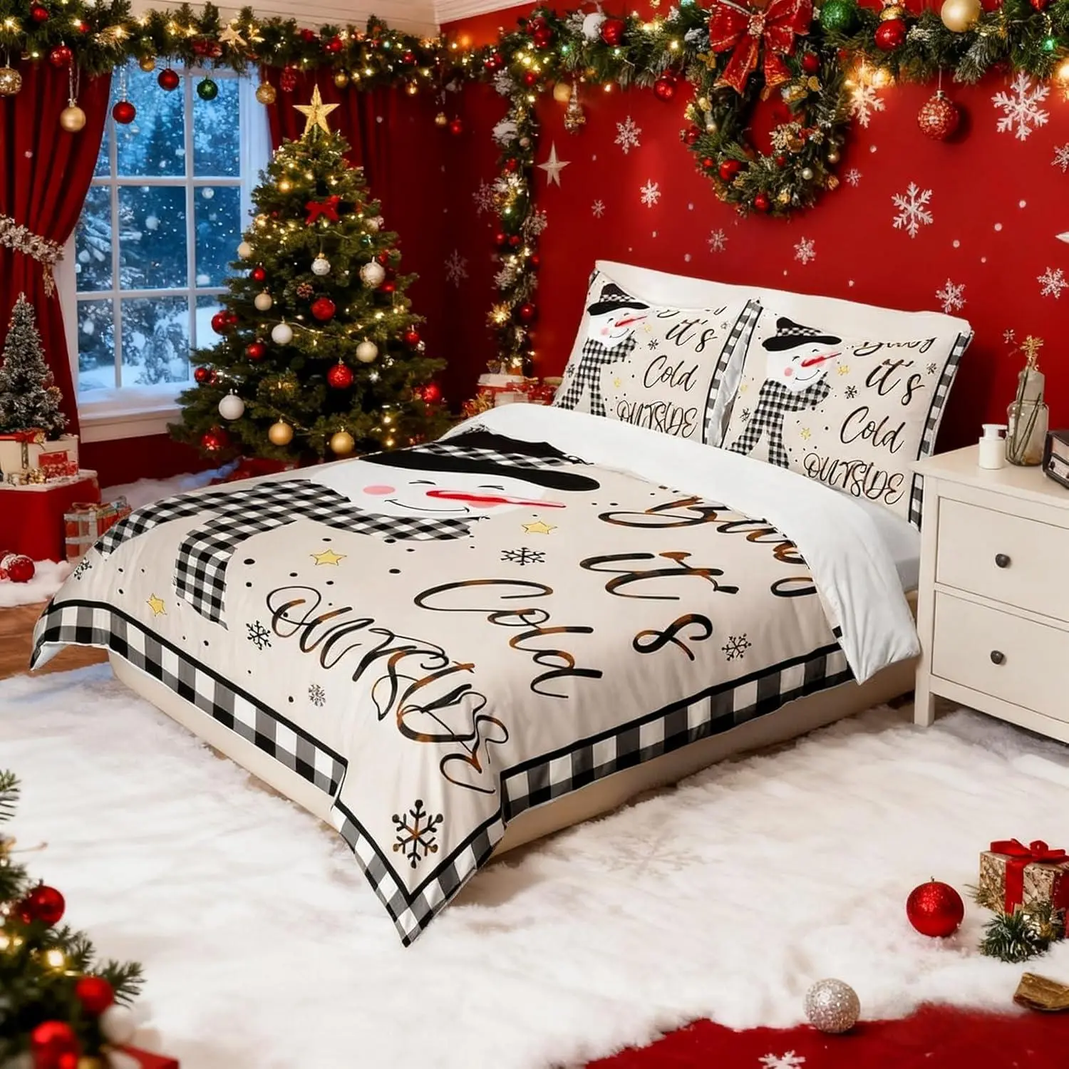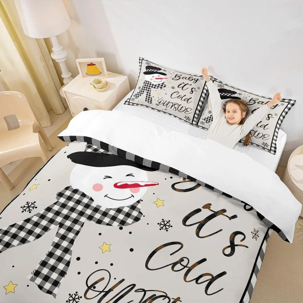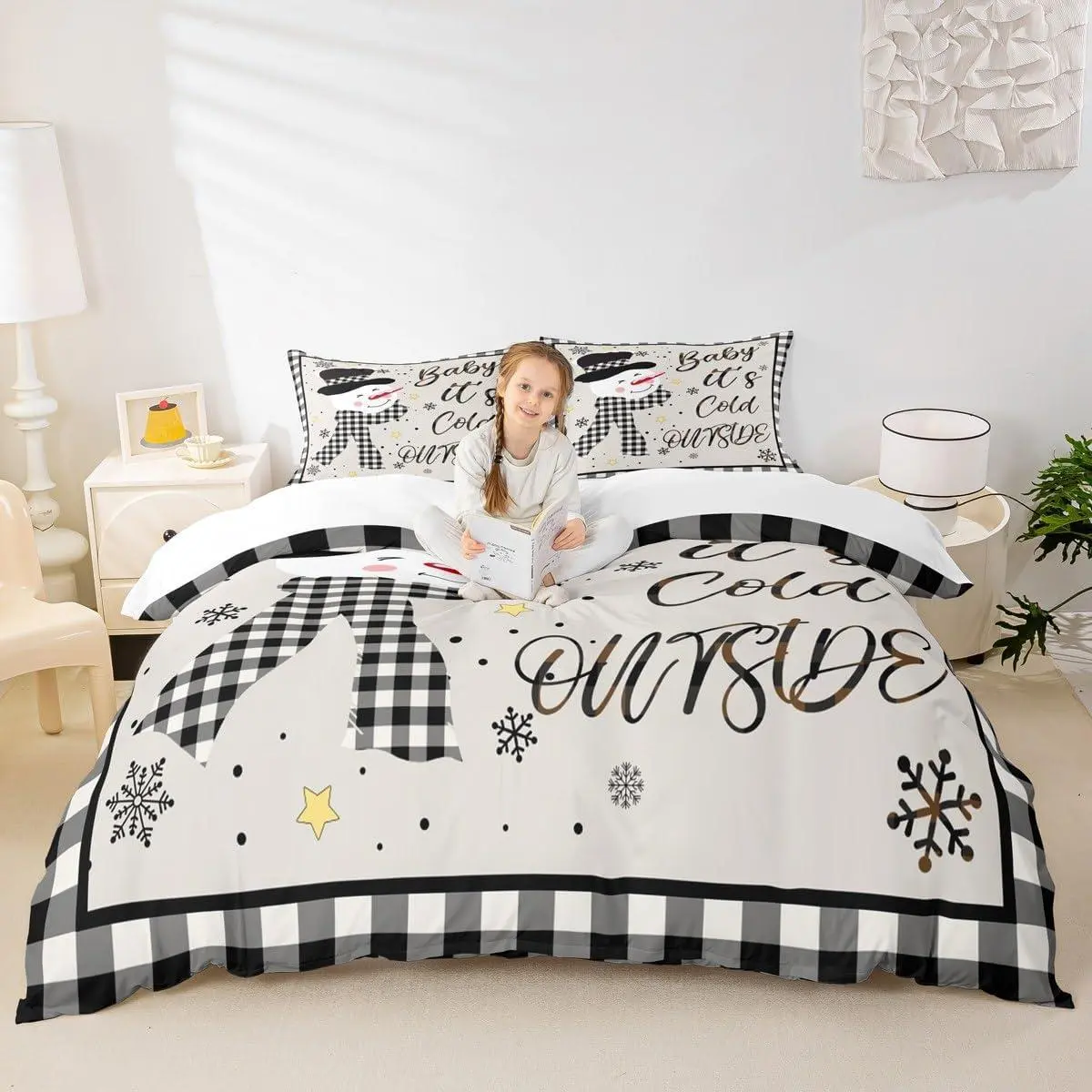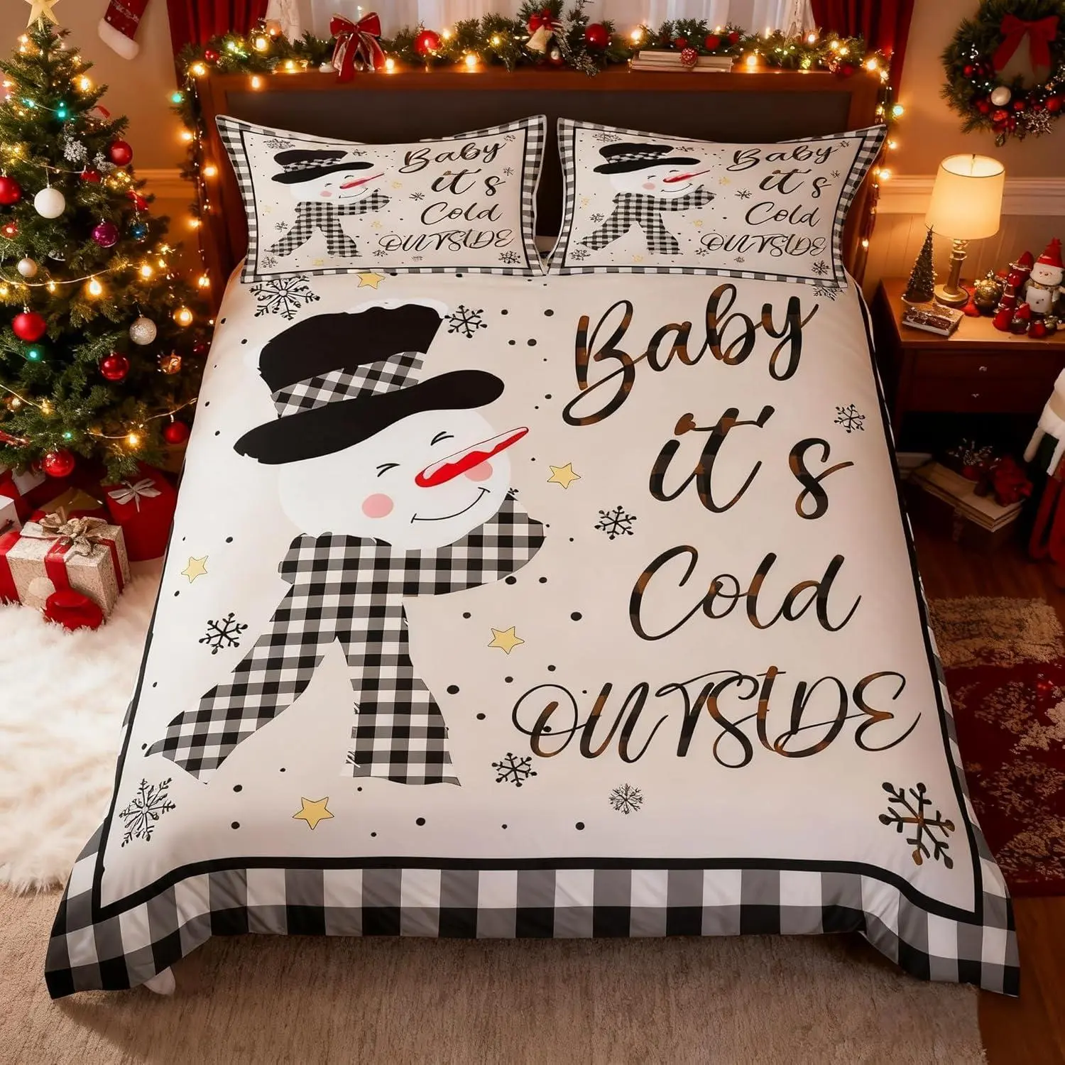 5. Kids Christmas Snowman Duvet Cover Setsnowflake Winter Bedding,Girls Boys Adults Home/Xmas Cabin Decor,Geometric Grids Lattice Comforter Cover,Rustic Vintage Quilt Cover