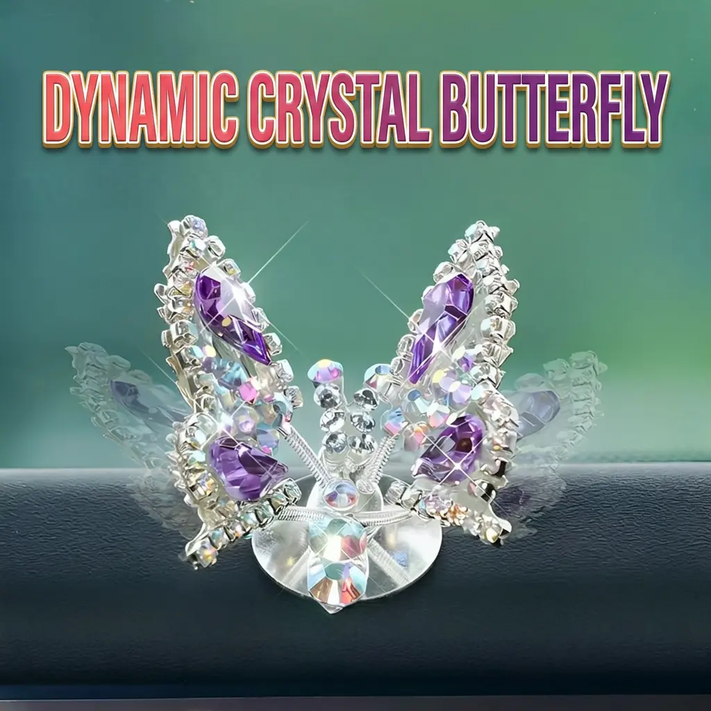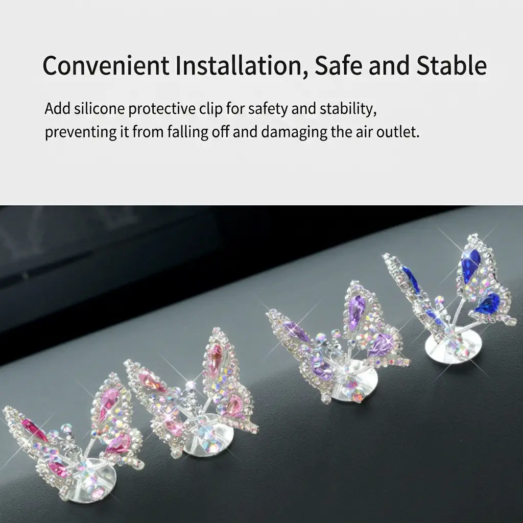 Dynamic Rhinestone Butterfly Car Decor Set, Bling Auto Dashboard Ornament & Air Vent Clip, Cute Car Interior Accessories for Women