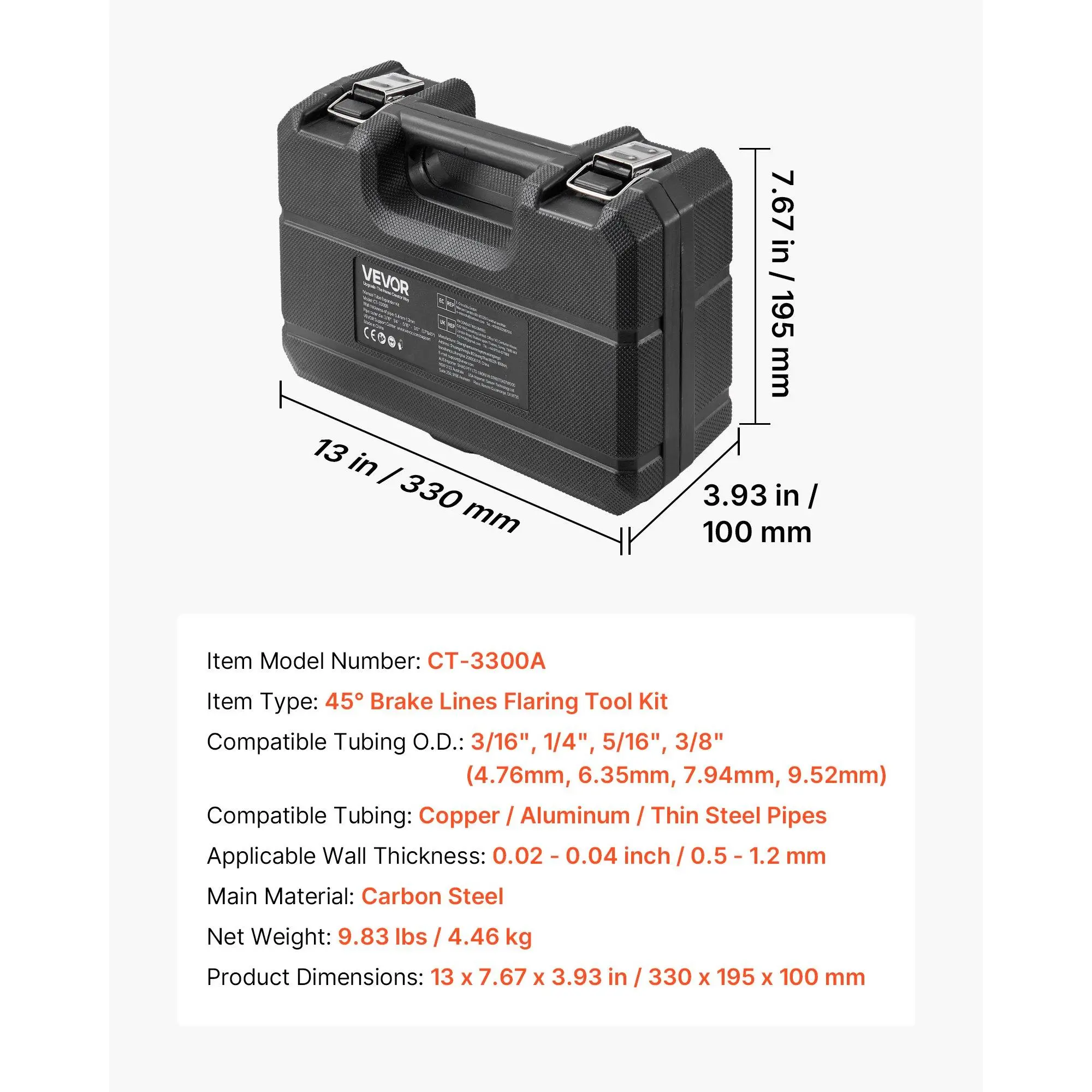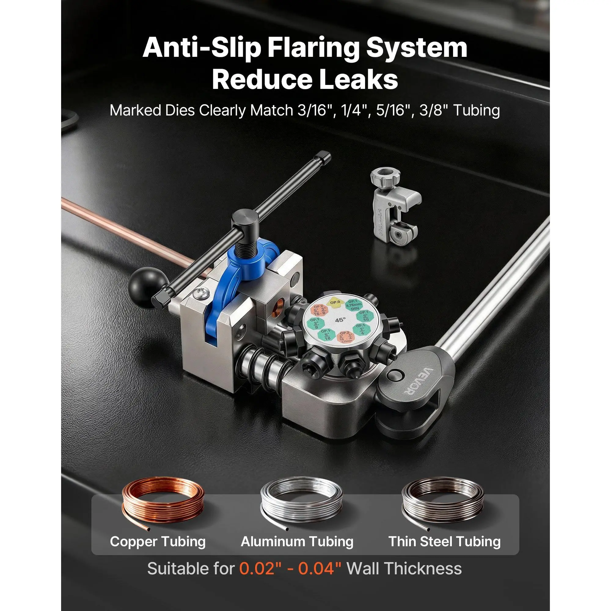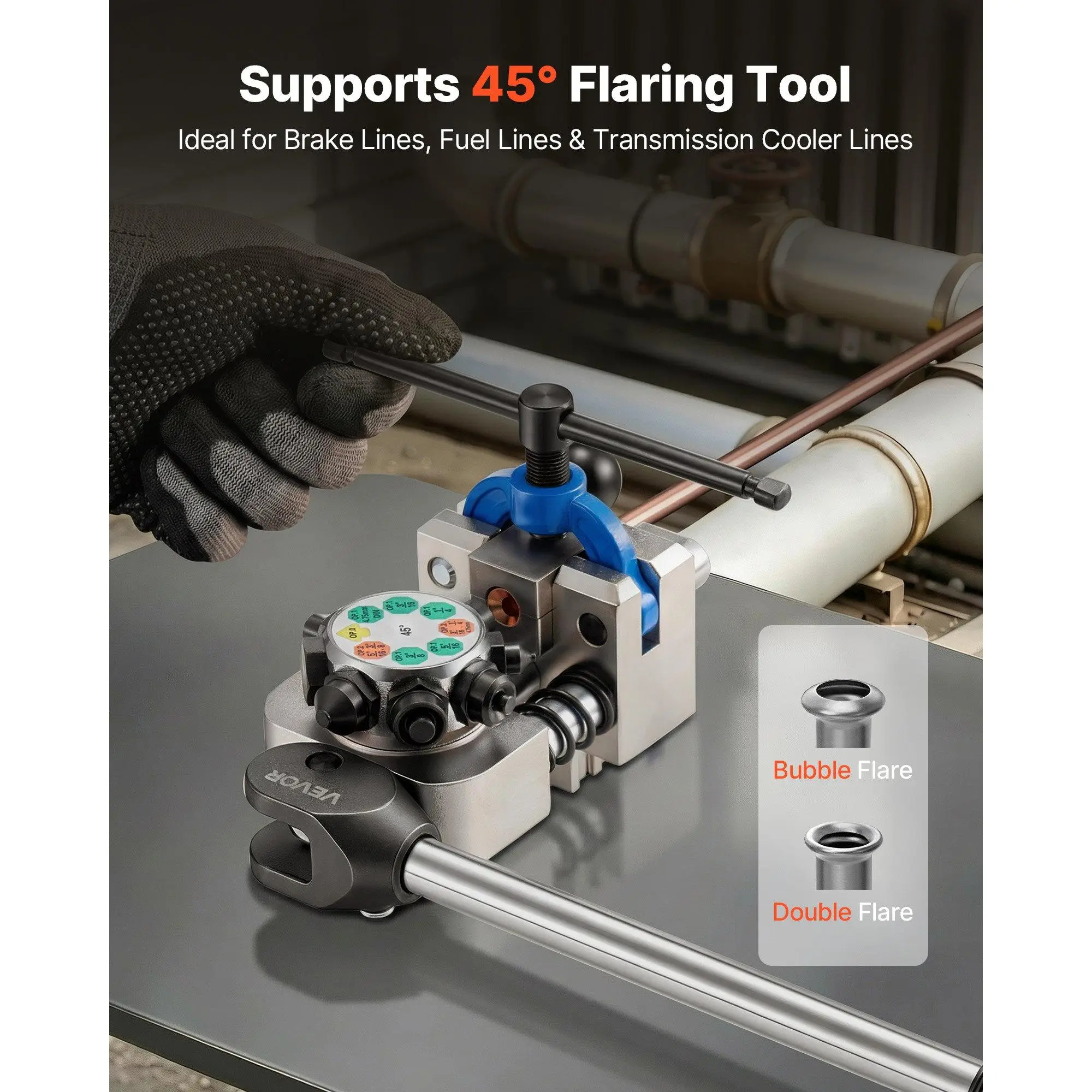 VEVOR Professional Brake Line Flaring Tool, 45 Degree Double Flare Bubble Flare Tool Kit for 3/16, 1/4, 5/16, 3/8 Copper Aluminum Thin Steel Tubes