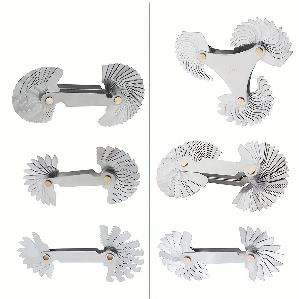 6 Style Alloy Thread Gauge – Dual Metric & Imperial Thread Checker,Handheld Nut and Bolt Identifier,Precision Thread Measurement Tool with Ergonomic Grip,Durable Alloy for Mechanical,Industrial,and DIY Use,Accurate Thread Size Gauge