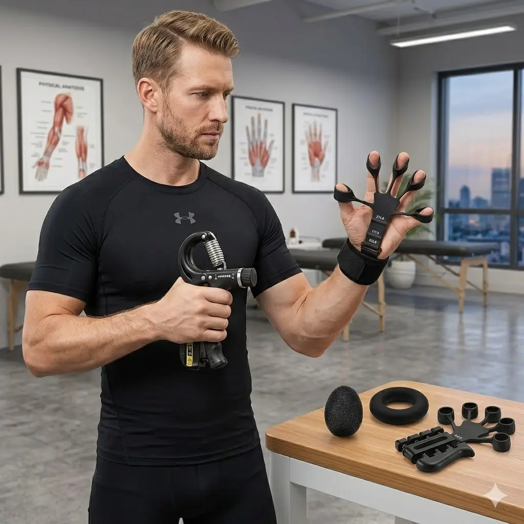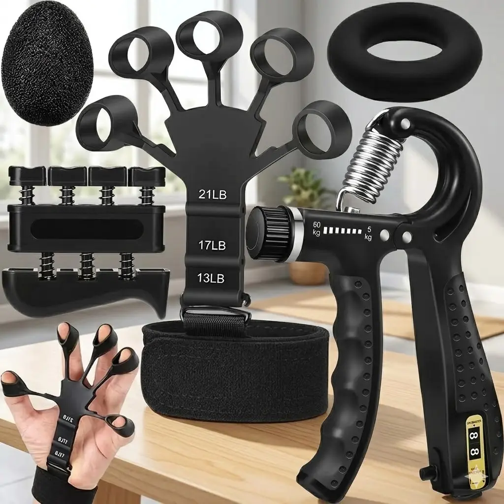 Our 5-pack grip strengthener kit features adjustable resistance trainers to build hand, wrist & forearm strength. Includes forearm exerciser & massage balls for recovery, ideal for therapy, athletes & daily gym training.