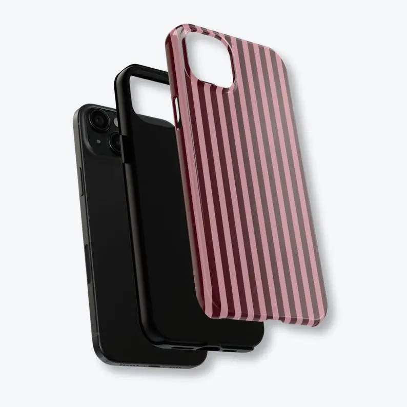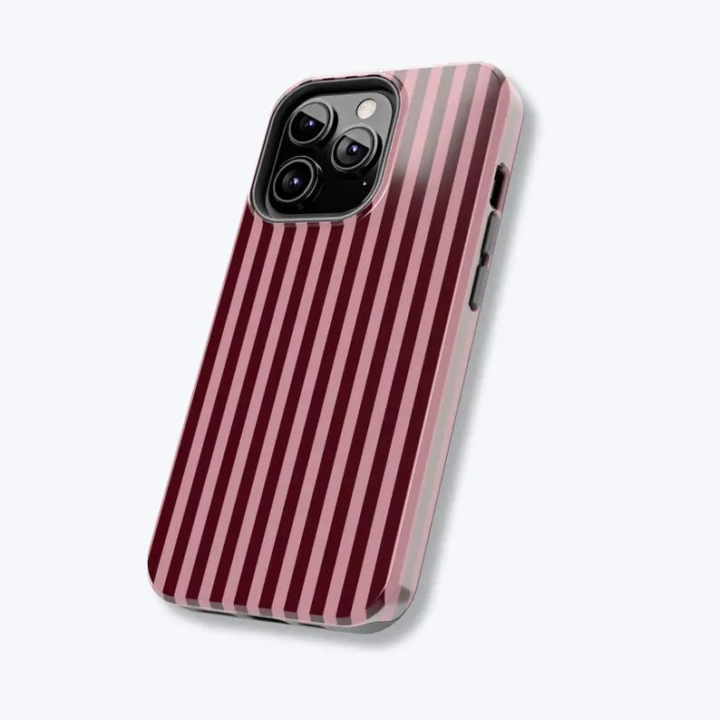 Burgundy & Pink Stripe Phone Case Glossy Slim or Tough Case for iPhone Samsung Google Pixel Polycarbonate TPU Impact Resistant Shock Dispersion Wireless Charging Compatible