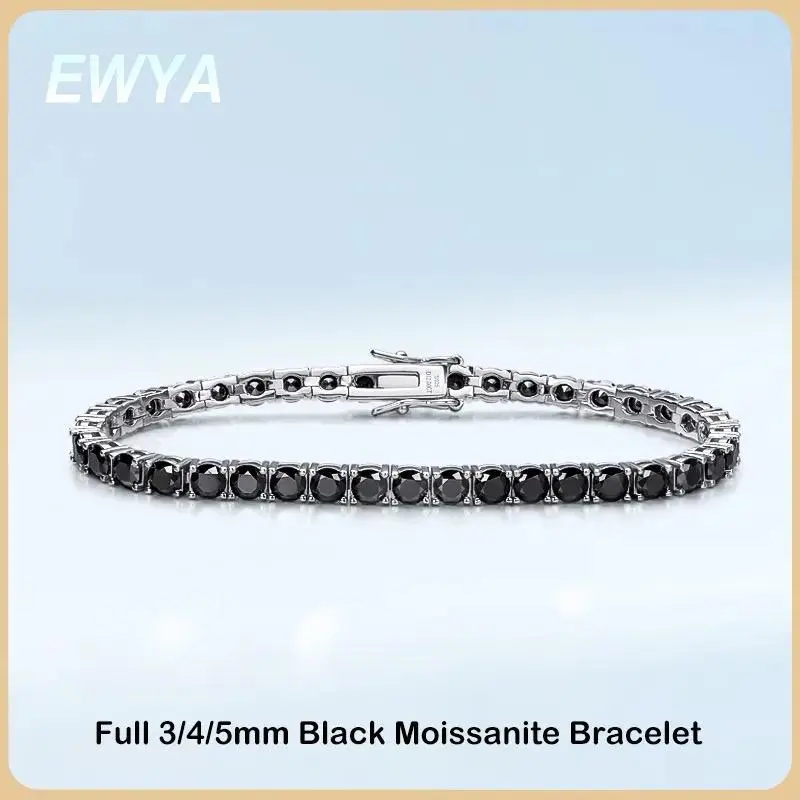 EWYA GRA Certified Real 3/4/5/6.5MM Full Black Moissanite Tennis Bracelet for Women Men S925 Silver Link Bracelets Fine Jewelry