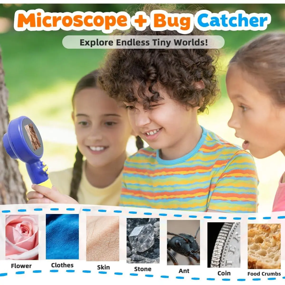 1080P Digital Microscope for Kids with Bug Catcher Kit - Handheld STEM Science Toy, Rechargeable, Portable, Supports 64GB TF Card, Educational Gift for Ages 3-12 (Blue)