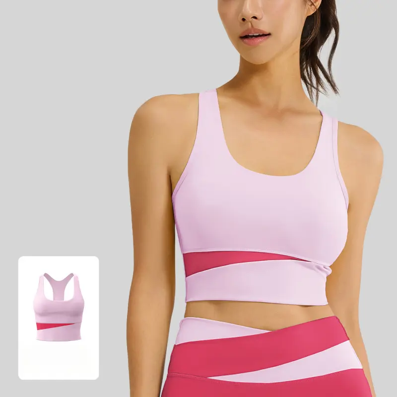 Color Block Sports Bra for Women, High Impact Shockproof & Push Up Fitness Tank Top, Running Yoga Beauty Back Bra