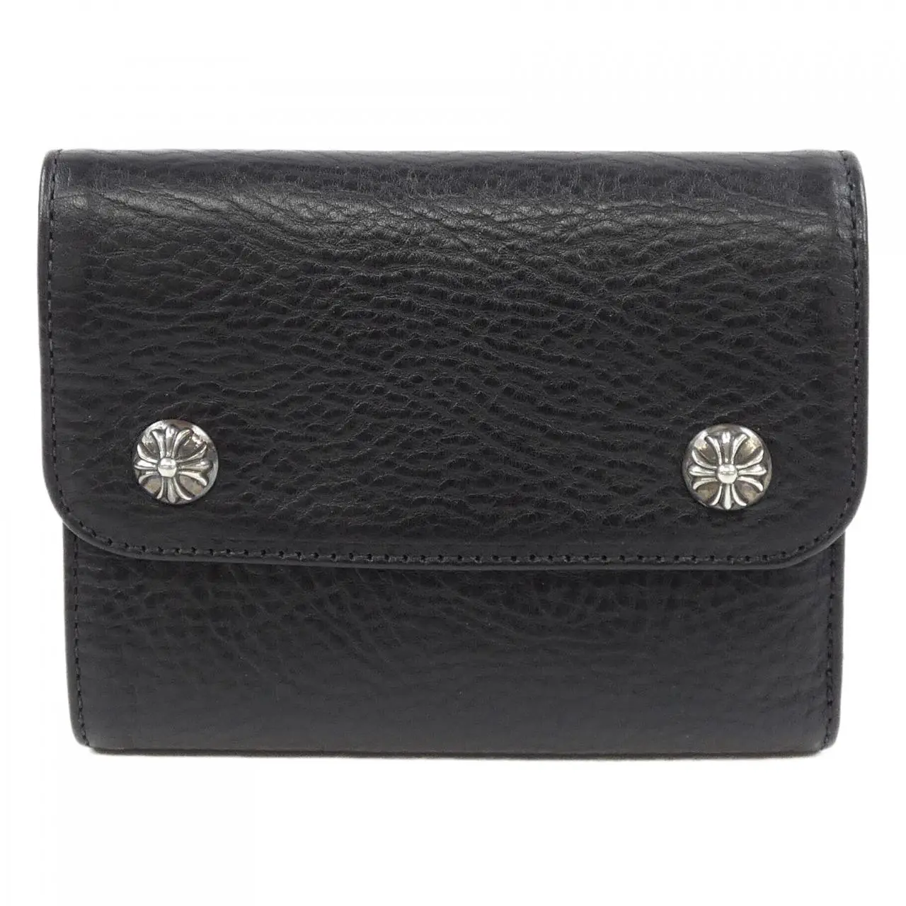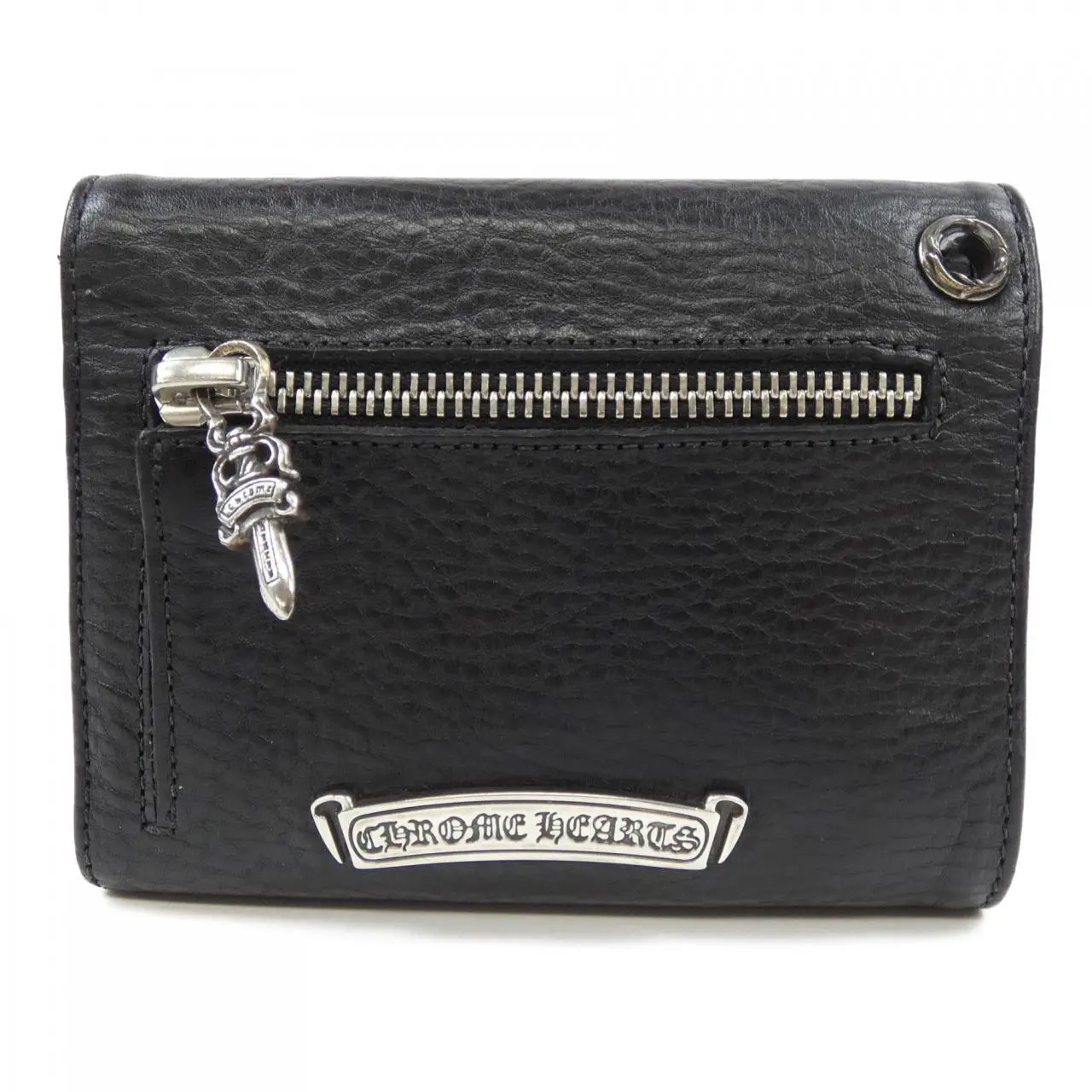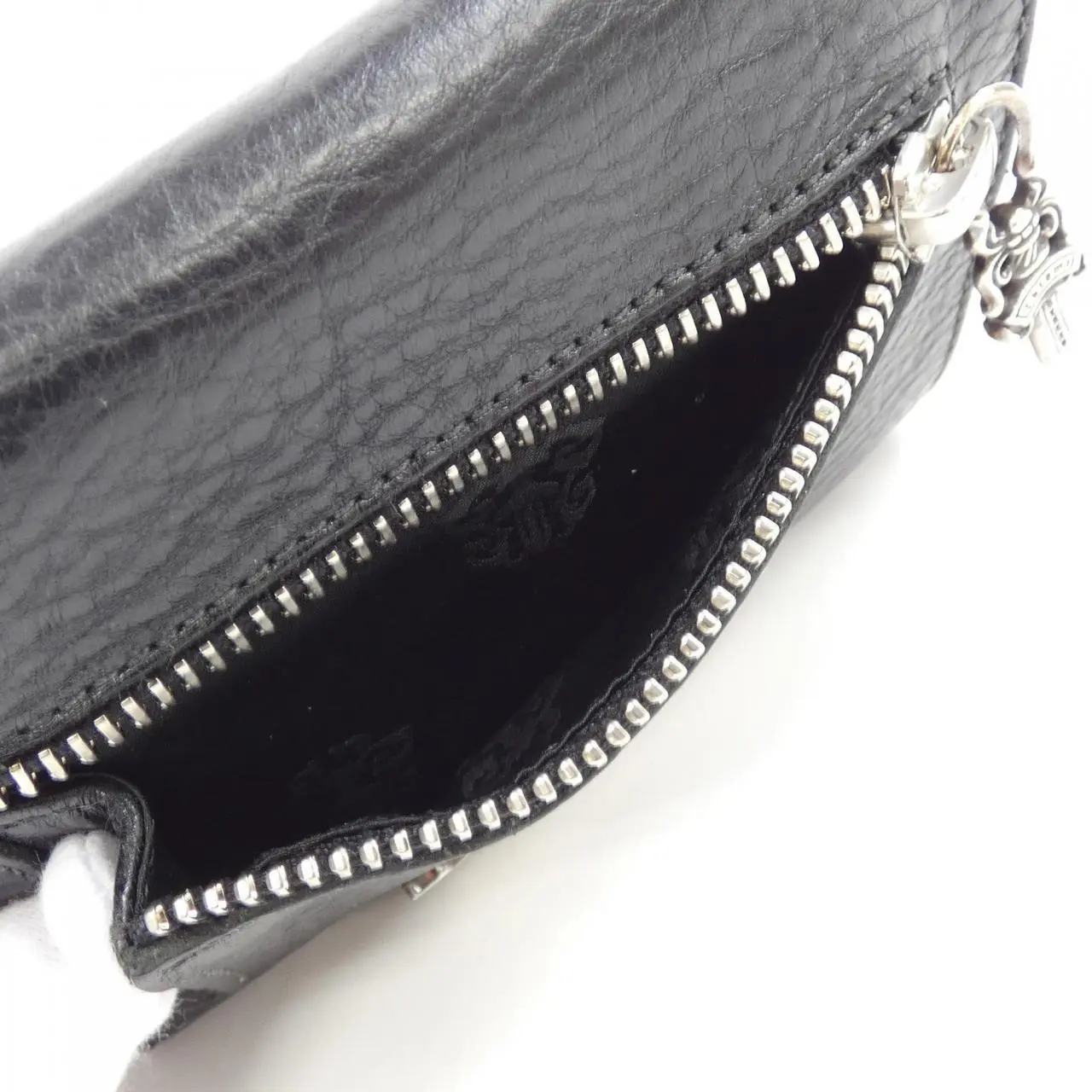 Pre-owned Chrome Hearts Calfskin Small Leather Goods WAVE MINI CROSS CH SCROLL LABEL Wallet