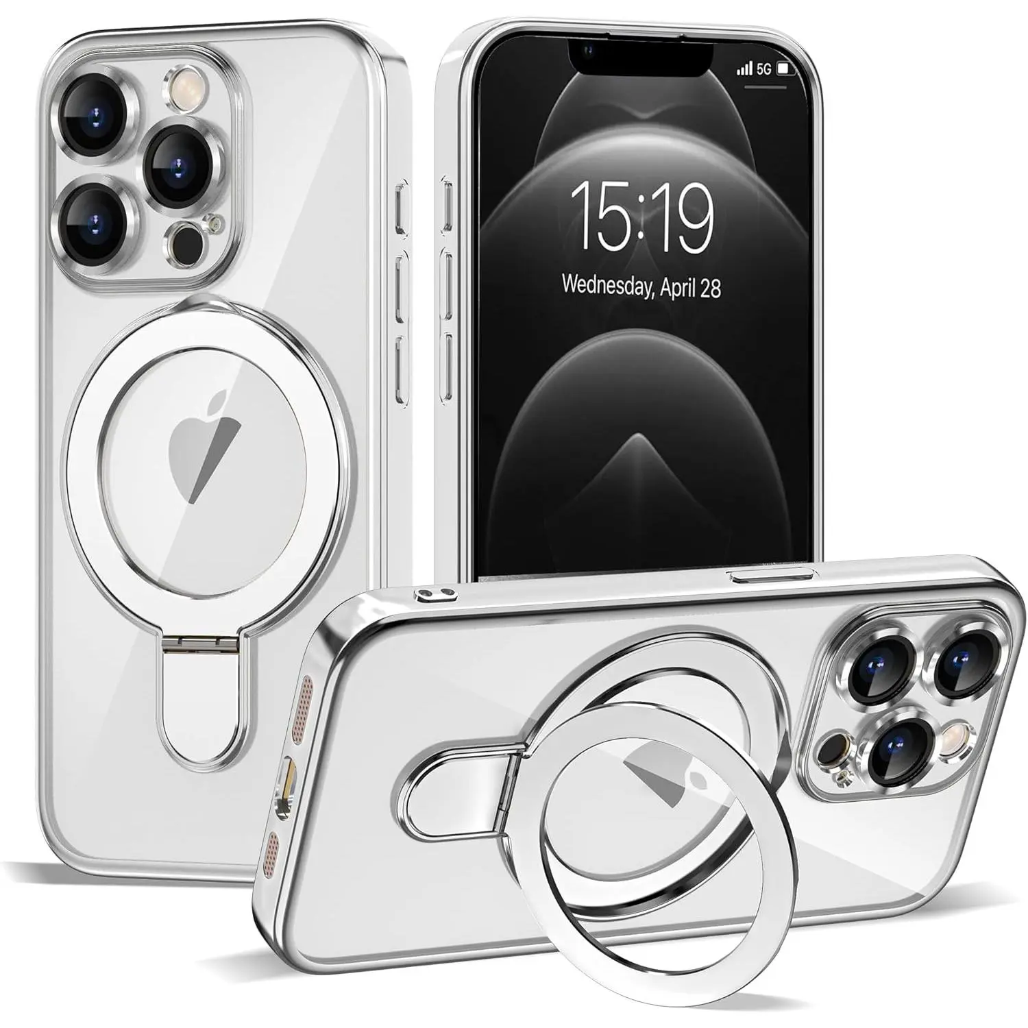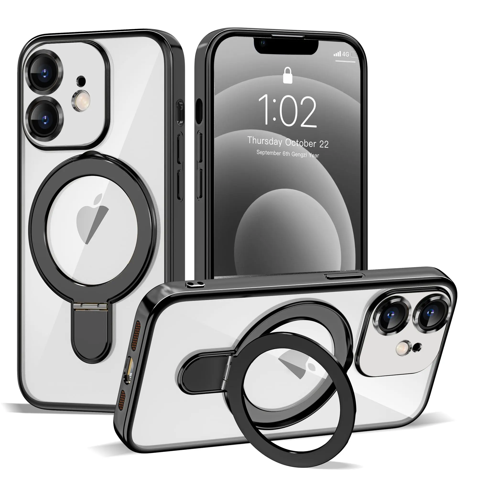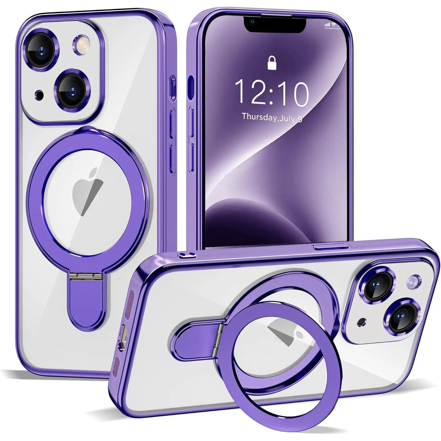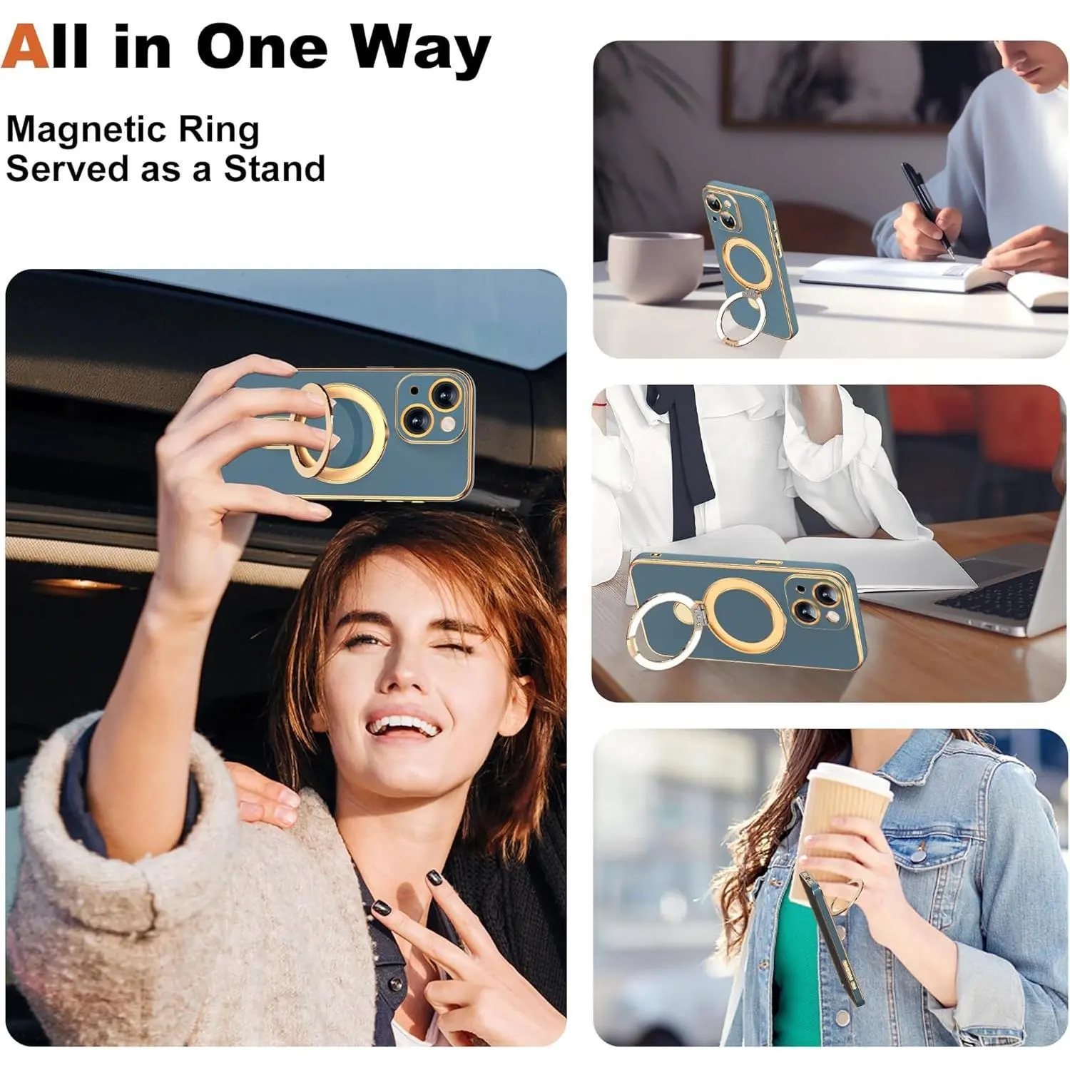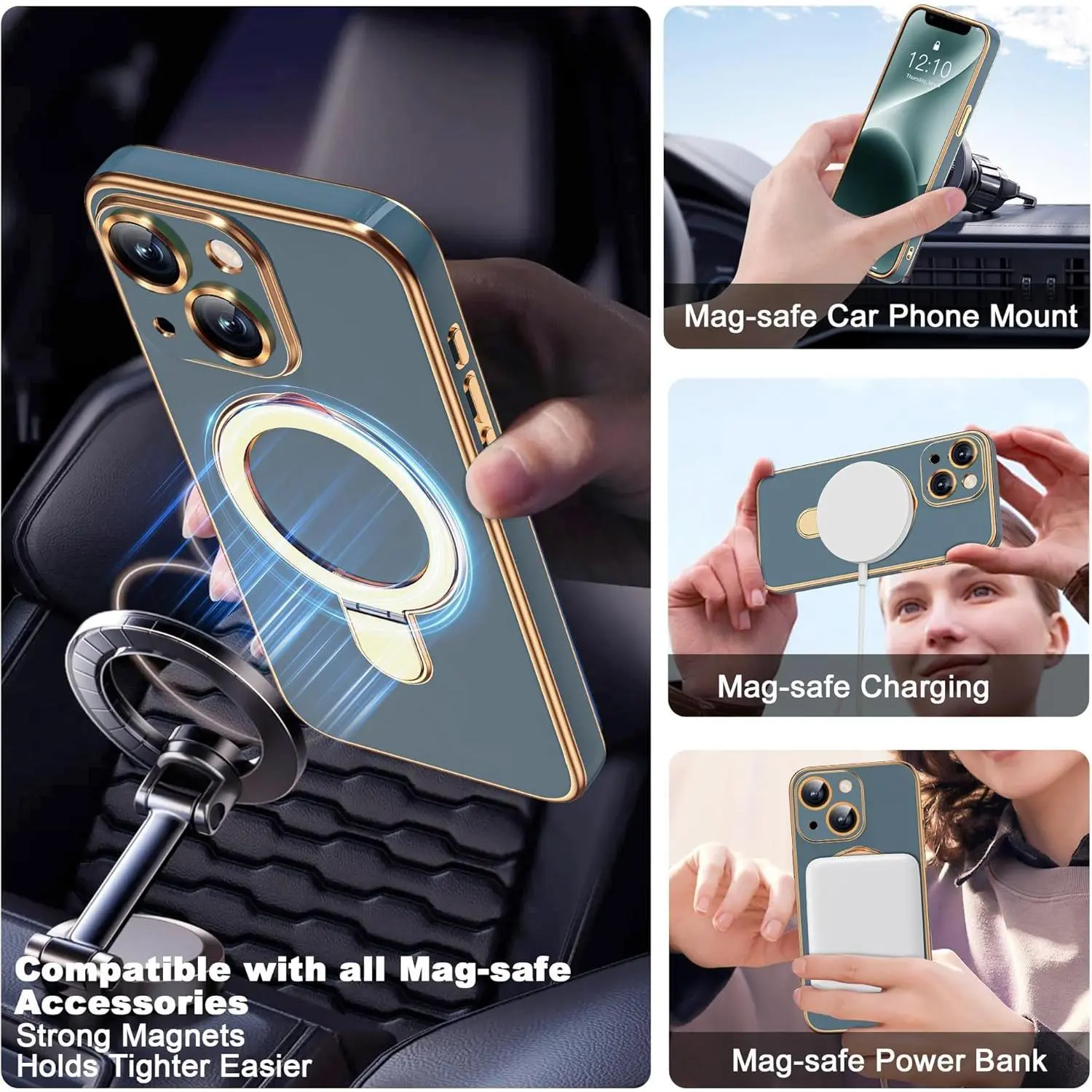 Compatible with iPhone 14 Case with Magnetic Ring Stand [Compatible with Mag-Safe] [Full Camera Lens Protector] Soft Plating Phone Case for iPhone 14 6.1", Grey Blue