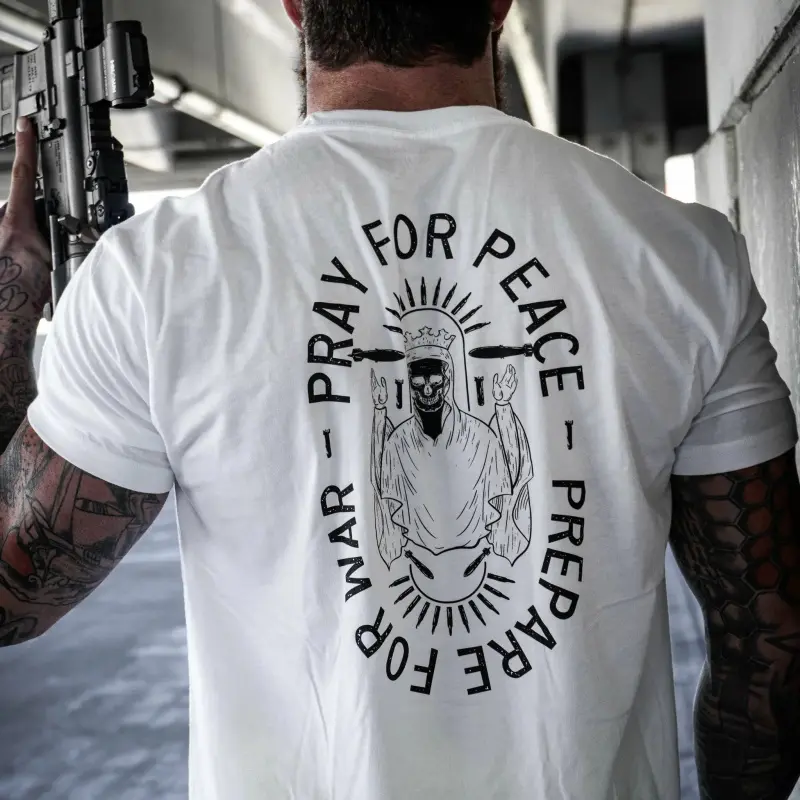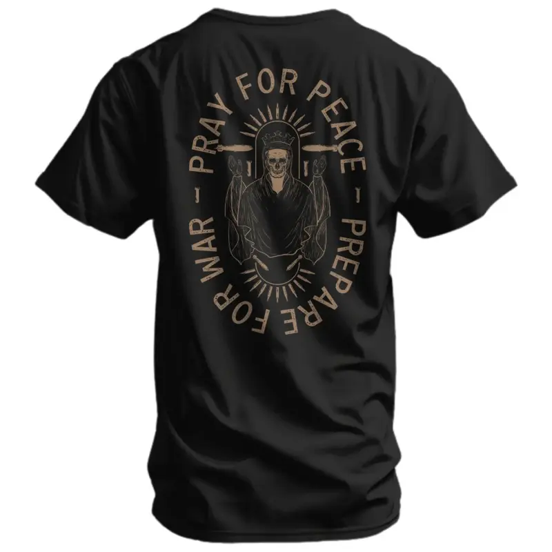This men’s tee features the powerful statement "Pray For Peace.Prepare For War."paired with the bold lifestyle phrase "Eat Sleep Goon Repeat".The tough, street-inspired design delivers strong attitude and personality, perfect for anyone who loves rugged, confident casual style.