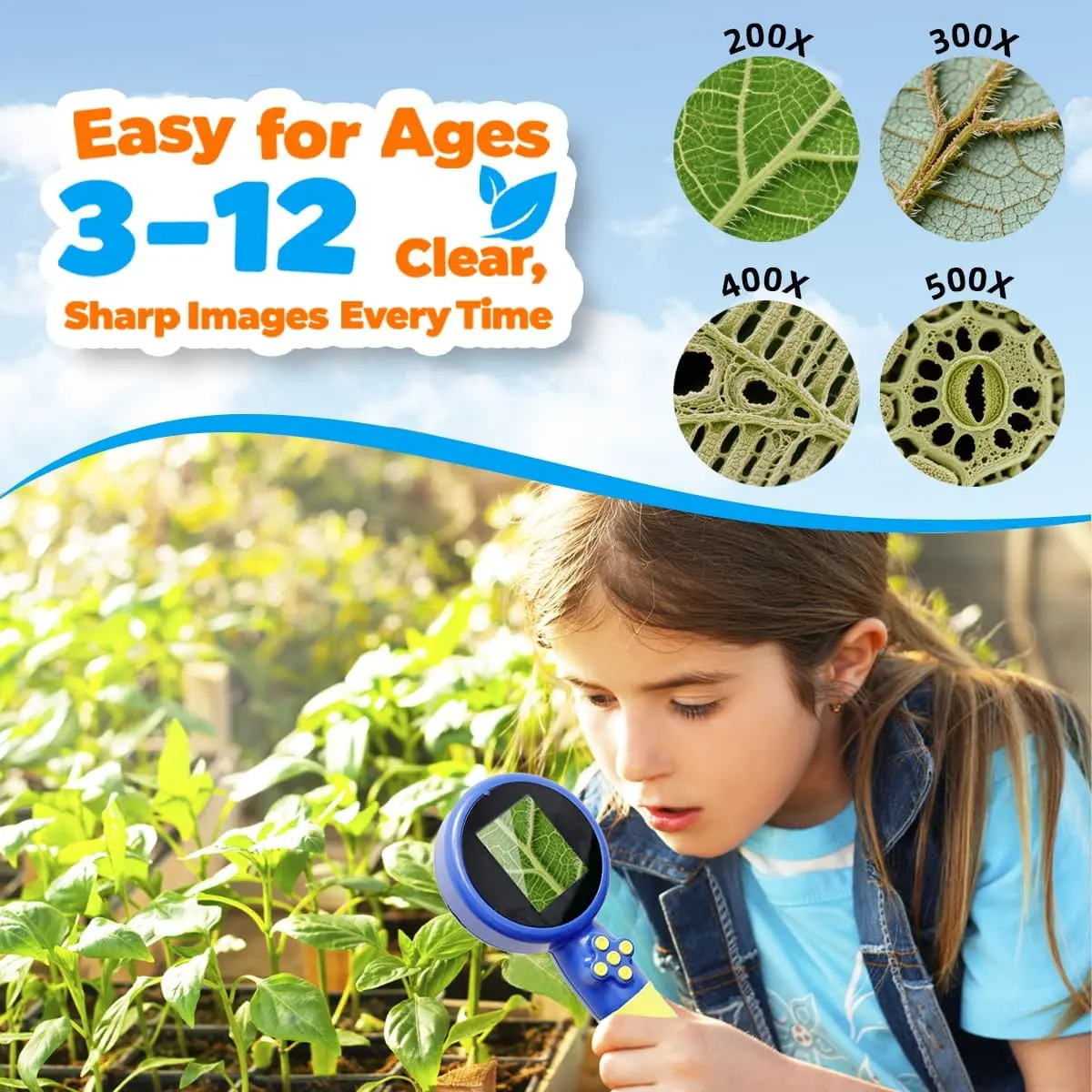 1080P Digital Microscope for Kids with Bug Catcher Kit - Handheld STEM Science Toy, Rechargeable, Portable, Supports 64GB TF Card, Educational Gift for Ages 3-12 (Blue)