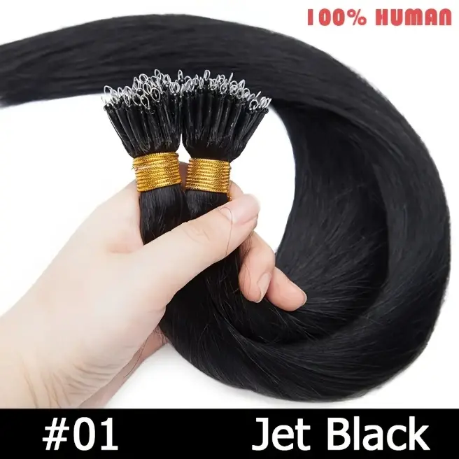 12-28 Inch 100% Remy Human Hair Extensions, Nano Tip Micro Nano Rings Cold Fusion, 50pcs 30g, Thick Smooth No Shedding No Tangle for Women